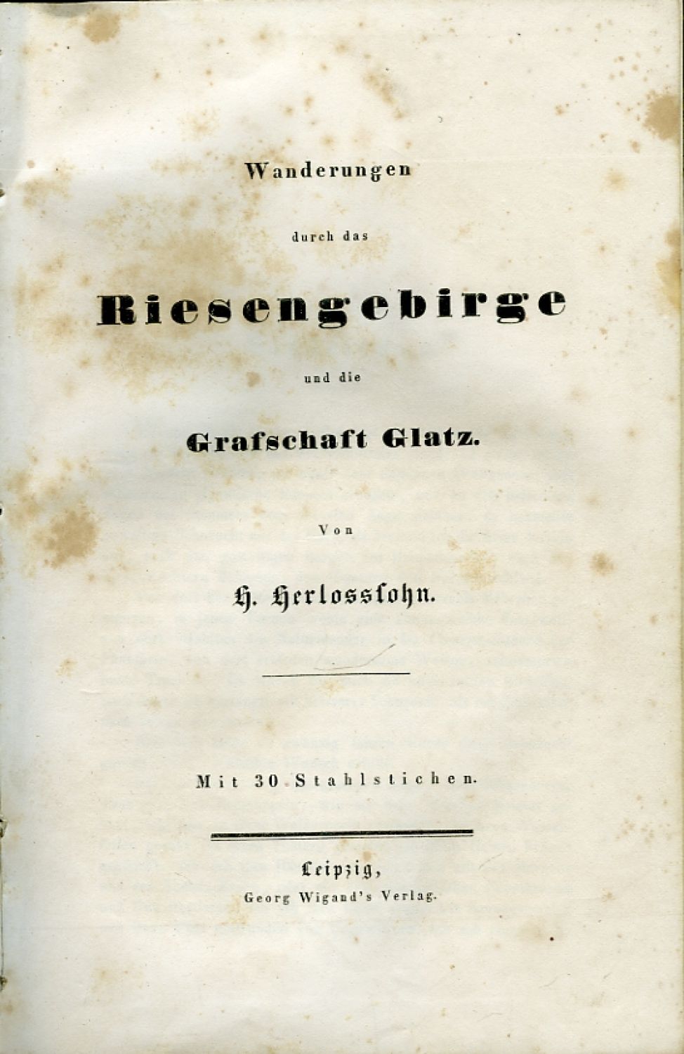 | Ilustrace: | Ve front. a v textu 30 původních celostr. ocelorytin s vyobrazením různých přírodních krkonošských scenérií a pamětihodností, které podle kreseb Ludwiga Richtera ryli různí rytci. |