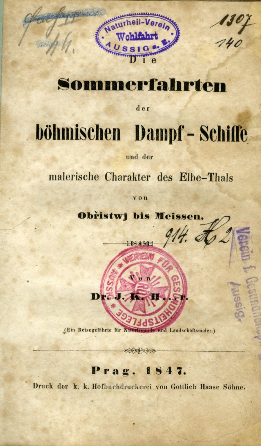 Die Sommerfahrten der böhmischen Dampf-Schiffe und der malerische Charakter des Elbe-Thals von Obřistwj bis Meissen. Von Dr. J. K. H...r.