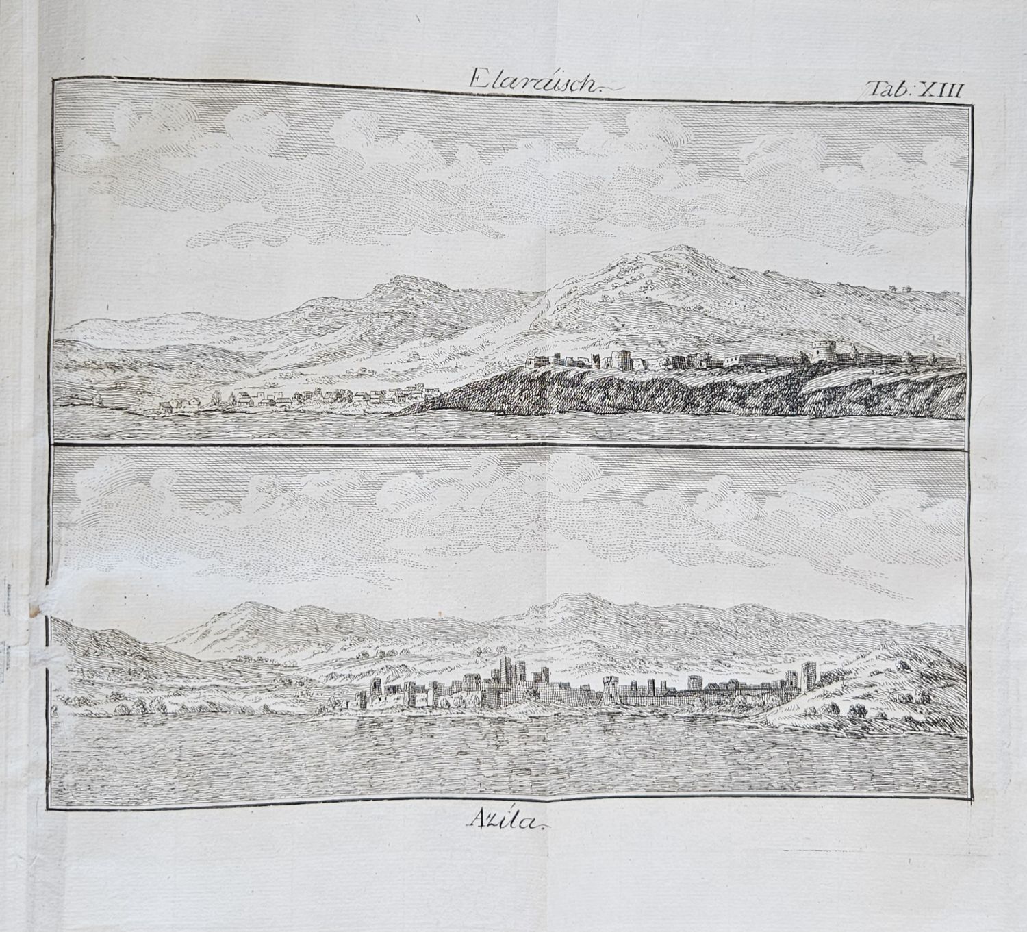 | Ilustrace: | Ve front. mědiryt. portrét autora s rytým medailonkem od Meno Haase, v textu tři mědirytiny, za textem 34 rozkládacích mědiryt. příloh s vyobrazením měst a památek v Maroku, obyvatel, zbraní, mincí, hudebních nástrojů, listin, na jednom listu notace,... |