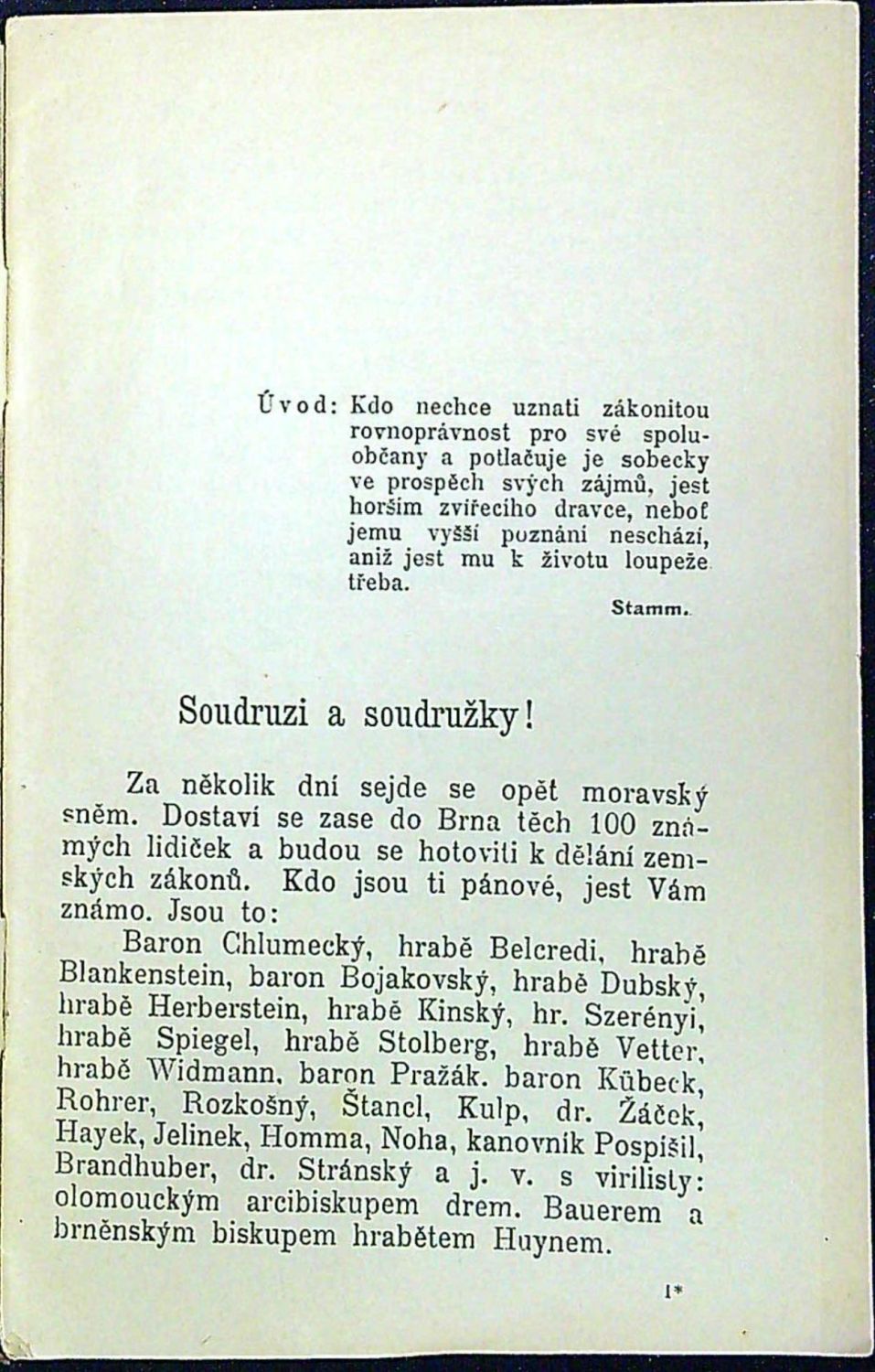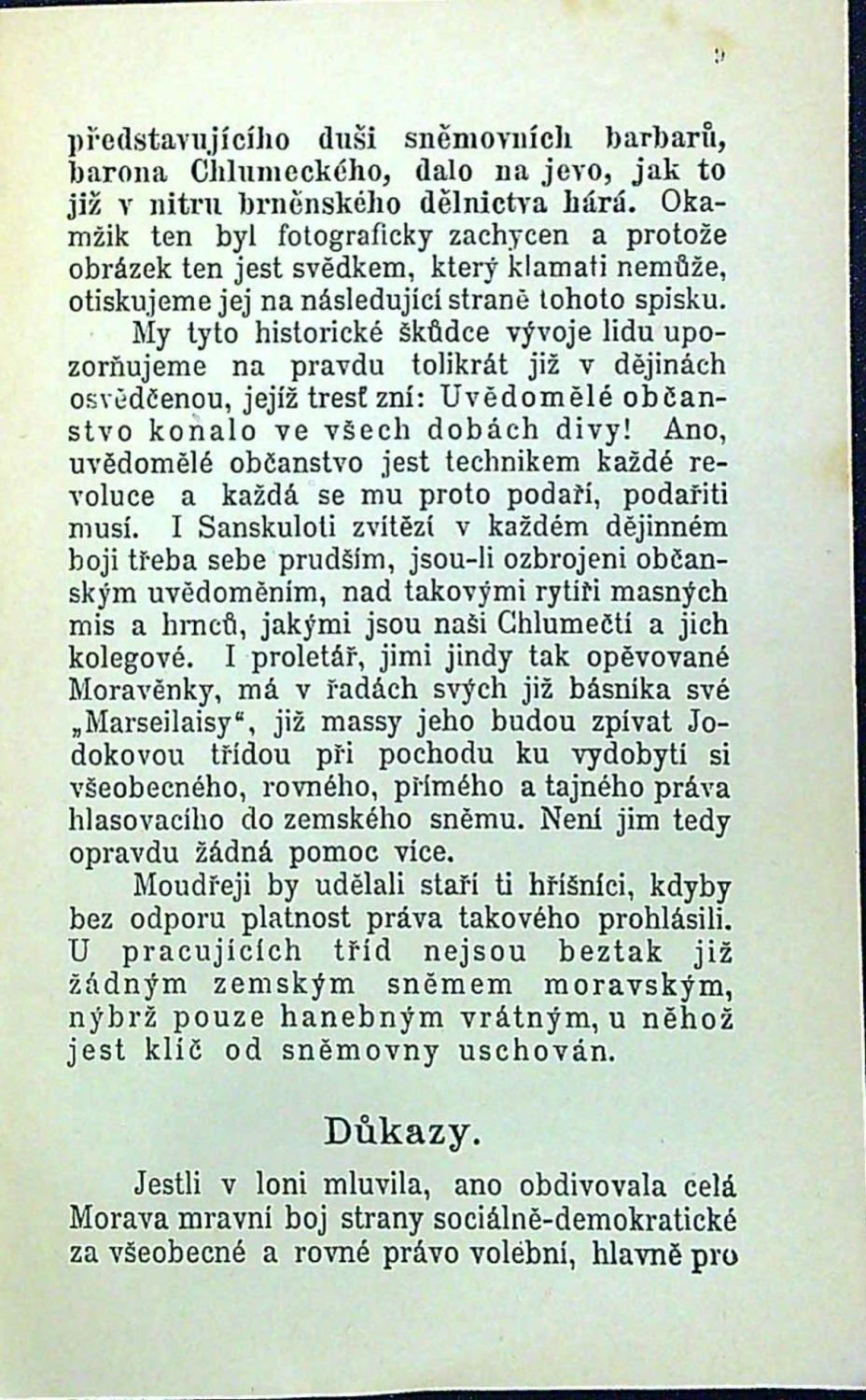 Nová výzva do boje dělnictva na Moravě za všeobecné, rovné, přímé a tajné právo volební do zemského sněmu.