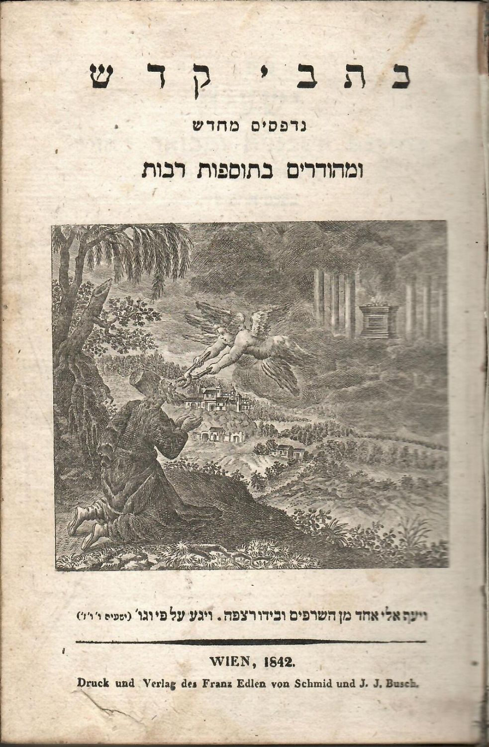 Tisk v hebrejštině (obsahuje též německý překlad tištěný hebrejskými písmeny), latinkou tištěné impresum a několik poznámek pod čarou. Rašiho komentáře oddělené jednoduchými linkami či vlnovkami. - Dobová kožená vazba , odřená a ohmataná, ve hřbetu dva kožené štítky s názvem a vyznačením dílu, v ostatních polích tlačené a zlacené rostlinné ornamenty. - Kniha obsahuje "Knihu Izajášovu" a je IV. dílem ve Vídni vydaného Písma svatého v hebrejštině.