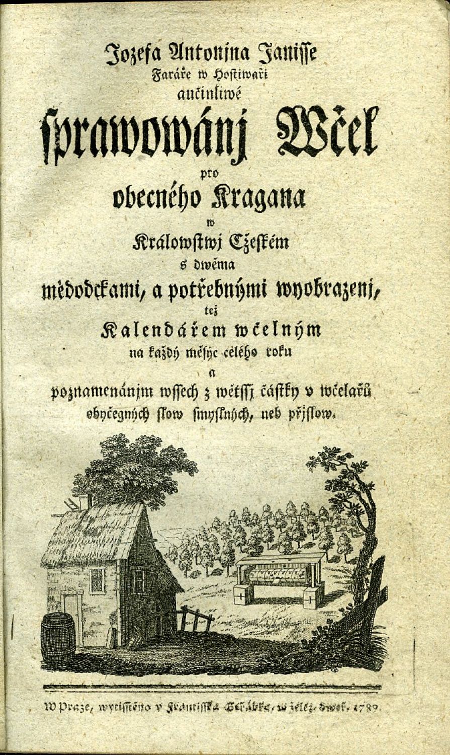 Jozefa Antonjna Janisse Faráře w Hostiwaři aučenliwé sprawowánj Wčel pro obecného Kragana w Králowstwj Cžeském s dwěma mědodckami, a potřebnými wyobrazenj, tež Kalendářem wčelným na každý měsýc celého roku a poznamenánjm wssech z wětssi částky v wčelařů obyčegných slow smyslných, neb přjslow.