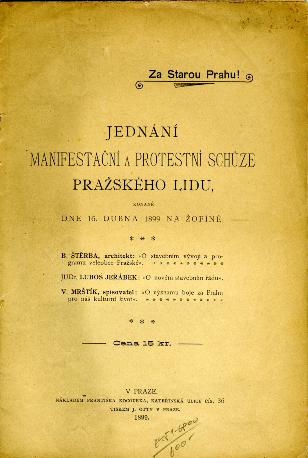 Jednání manifestační a protestní schůze pražského lidu, konané dne 16. dubna 1899 na Žofíně.