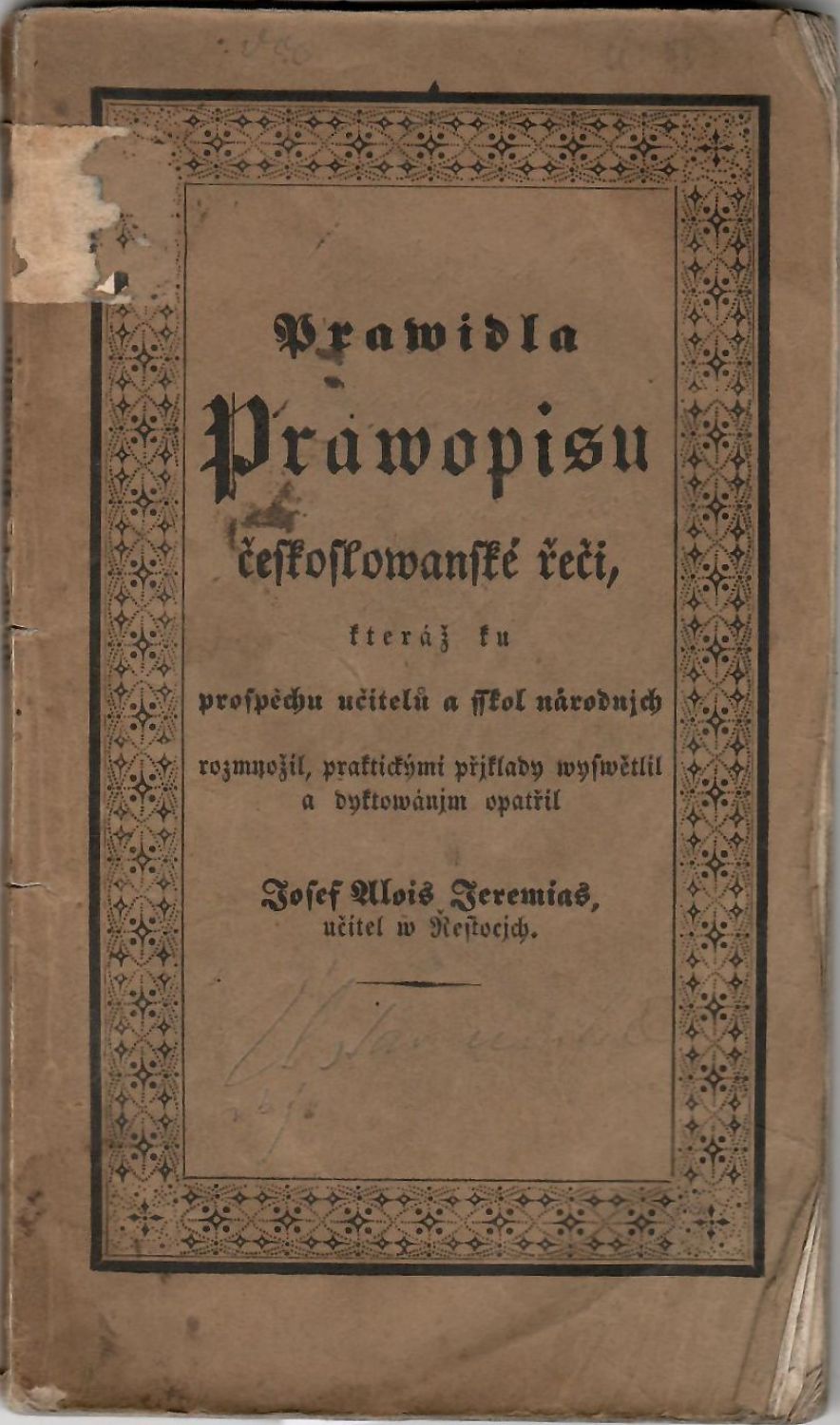Prawidla Prawopisu českoslowanské řeči, kteráž ku prospěchu učitelů a sskol národnjch rozmnožil, praktickými přjklady wyswětlil a dyktowánjm opatřil ....