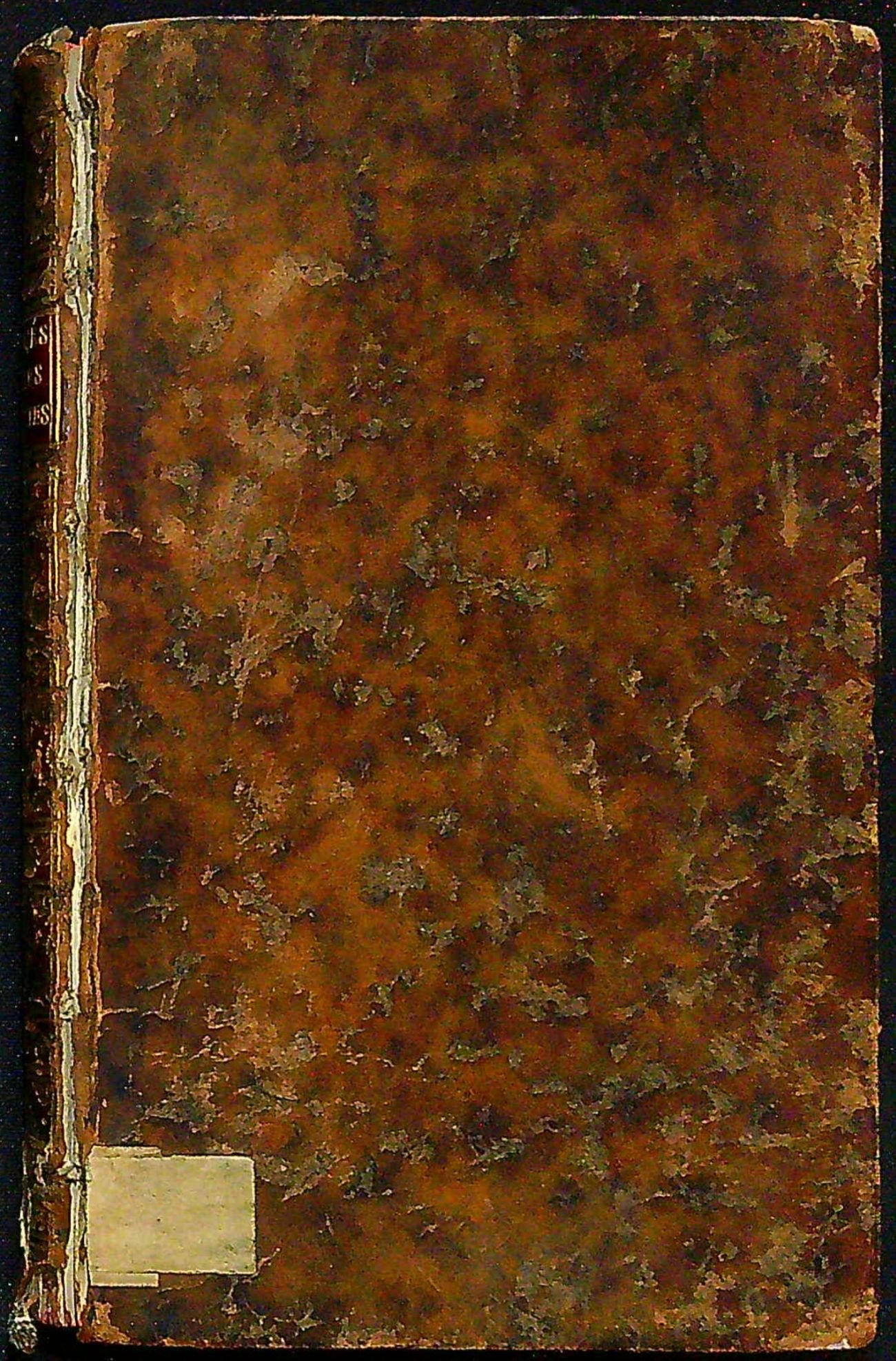 Dobová kožená vazba, hřbet dělený ozdobnou lištou do 6 polí, ve druhém poli kožený štítek s tlačeným a zlaceným názvem, v ostatních polích zlacený rostlinný ornament, červeně barvené ořízky. Přední deska vazby zčásti odtržená, kůže mírně zkrabatělá a místy lehce odřená. Na předním přídeští nalepeno mědirytinové ex libris F. Nicolaie a na tit. listu staré razítko berlínské lóže "Zu den drei Weltkugeln".