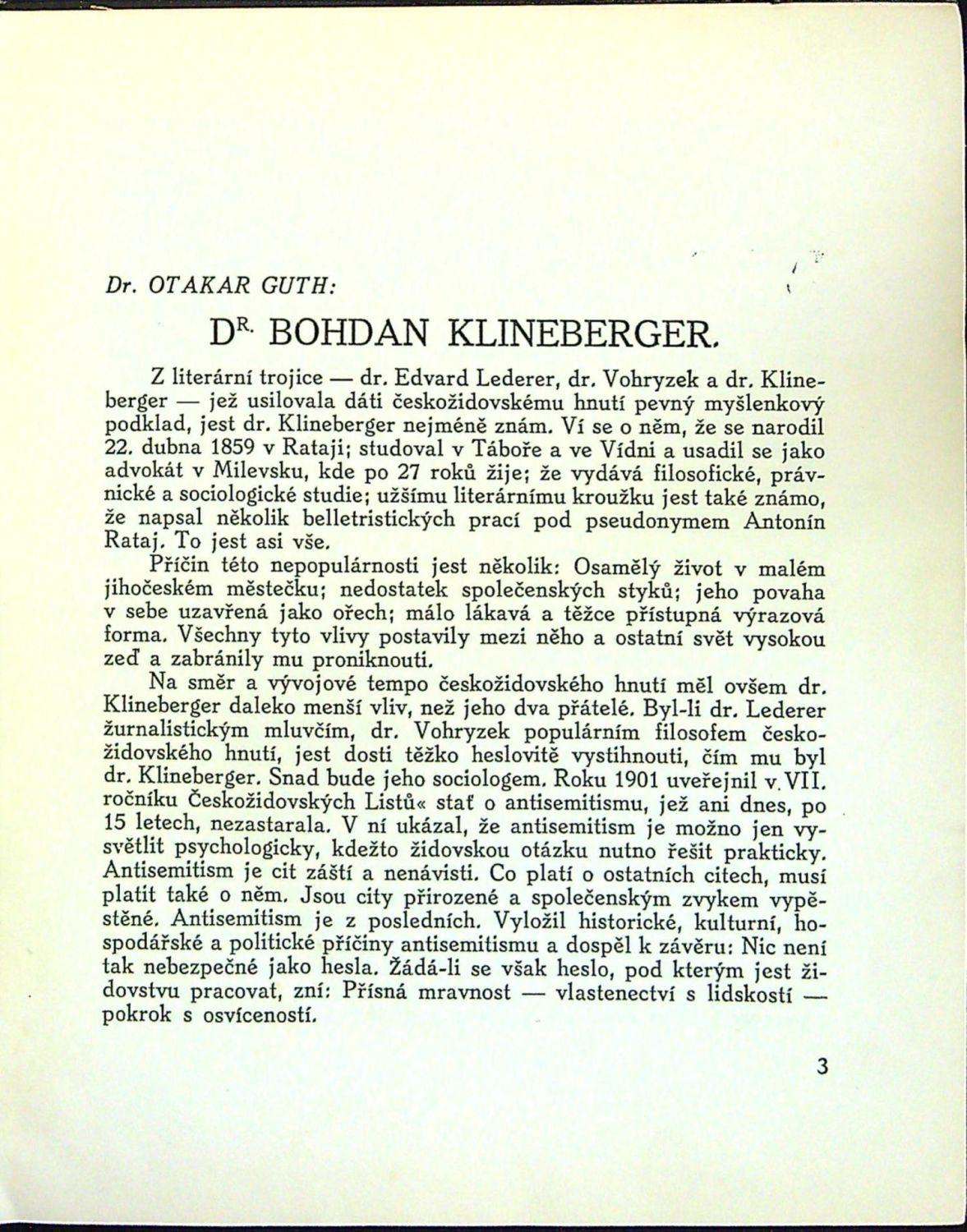 | Ilustrace: | Ve front. fotograf, portrét Dr. Bohdana Klinebergera. |