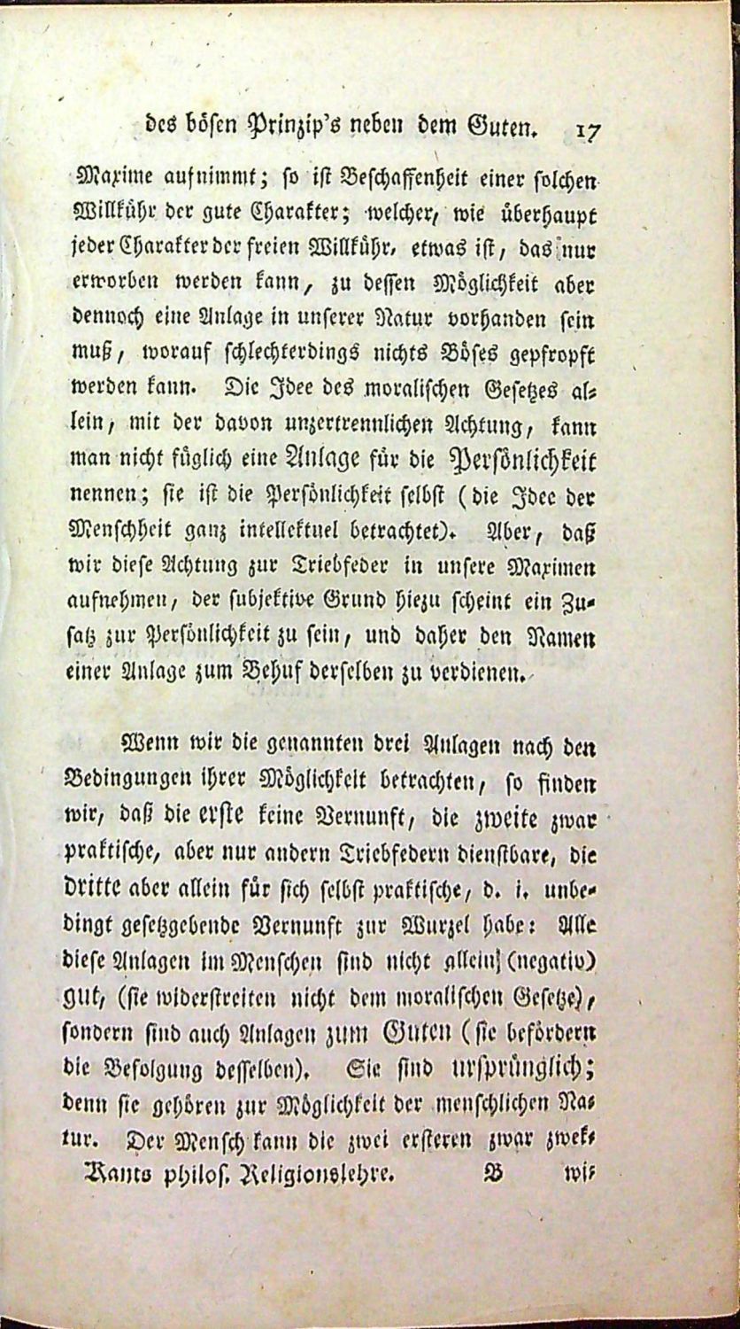 Die Religion innerhalb der Grenzen der blossen Vernunft.