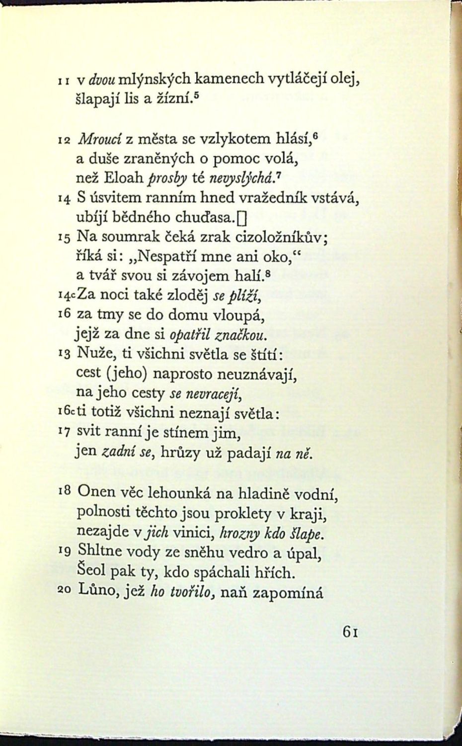 Ex. č. 4 z 10 výtisků přednostního vydání tištěného na ruční papír Zanders. Obálka lehce zaprášená, knižní blok nerozřezaný. Z původního textu hebrejského přeložil a poznámkami doplnil dr. Josef Heger.