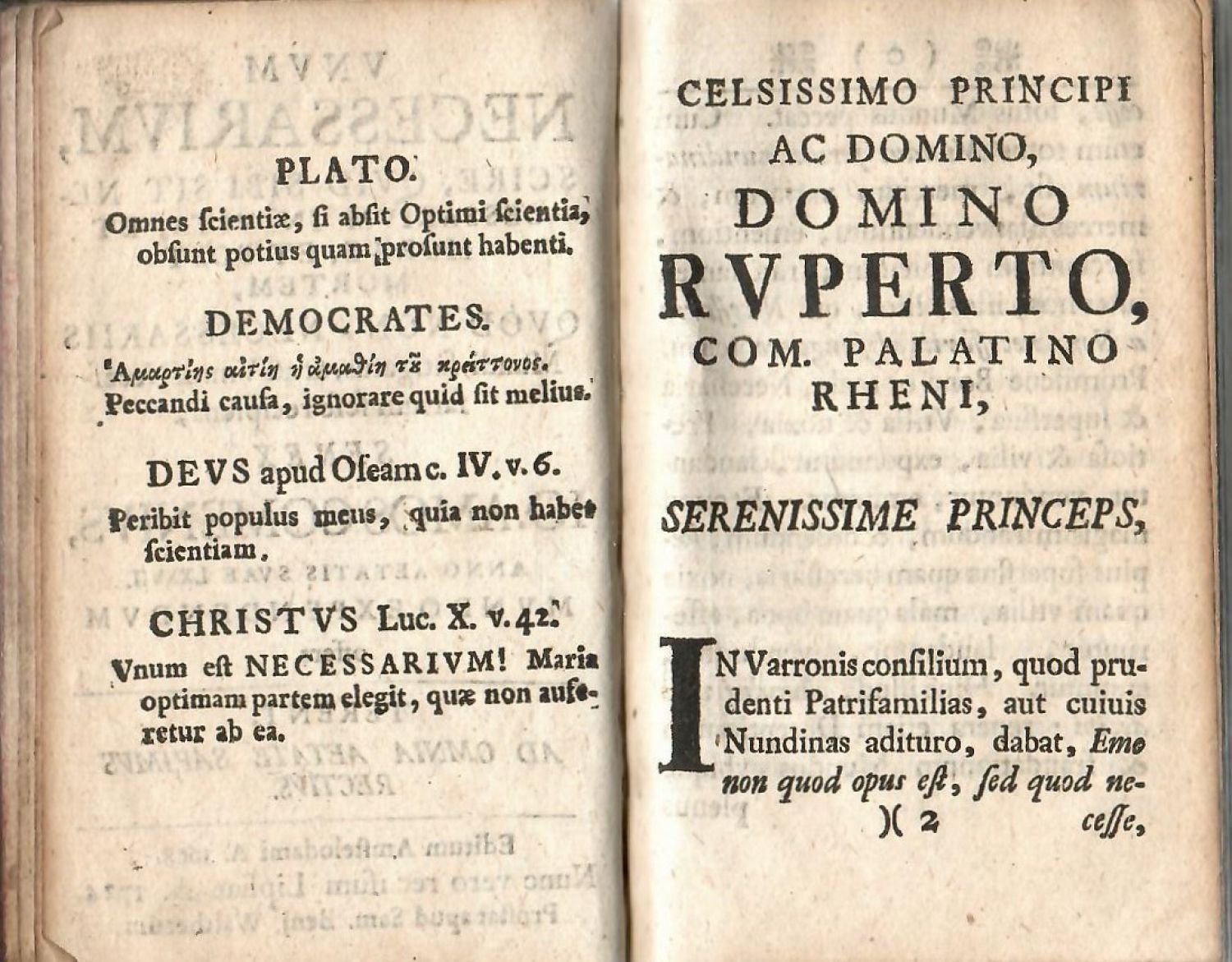 VNVM NECESSARIVM, SCIRE, QVID SIBI SIT NECESSARIVM IN VITA, ET MORTE, ET POST MORTEM. QVOD NON - NECESSARIIS Mundi fatigatus, et ad Vnum Necessarium sese recipiens, SENEX IO. AMOS COMENIVS, ANNO AETATIS SVAE LXXVII. MVNDO EXPENDENDVM offers. TERENT AD OMNIA AETATE SAPIMVS RECTIVS. Editum Amstelodami A. 1668. Nunc vero recusum Lipsae.