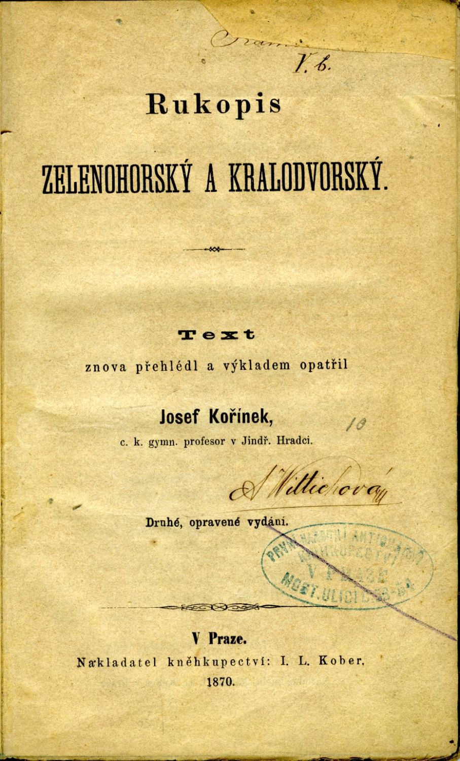 Rukopis zelenohorský a kralodvorský. Text znova přehlédl a výkladem opatřil ...