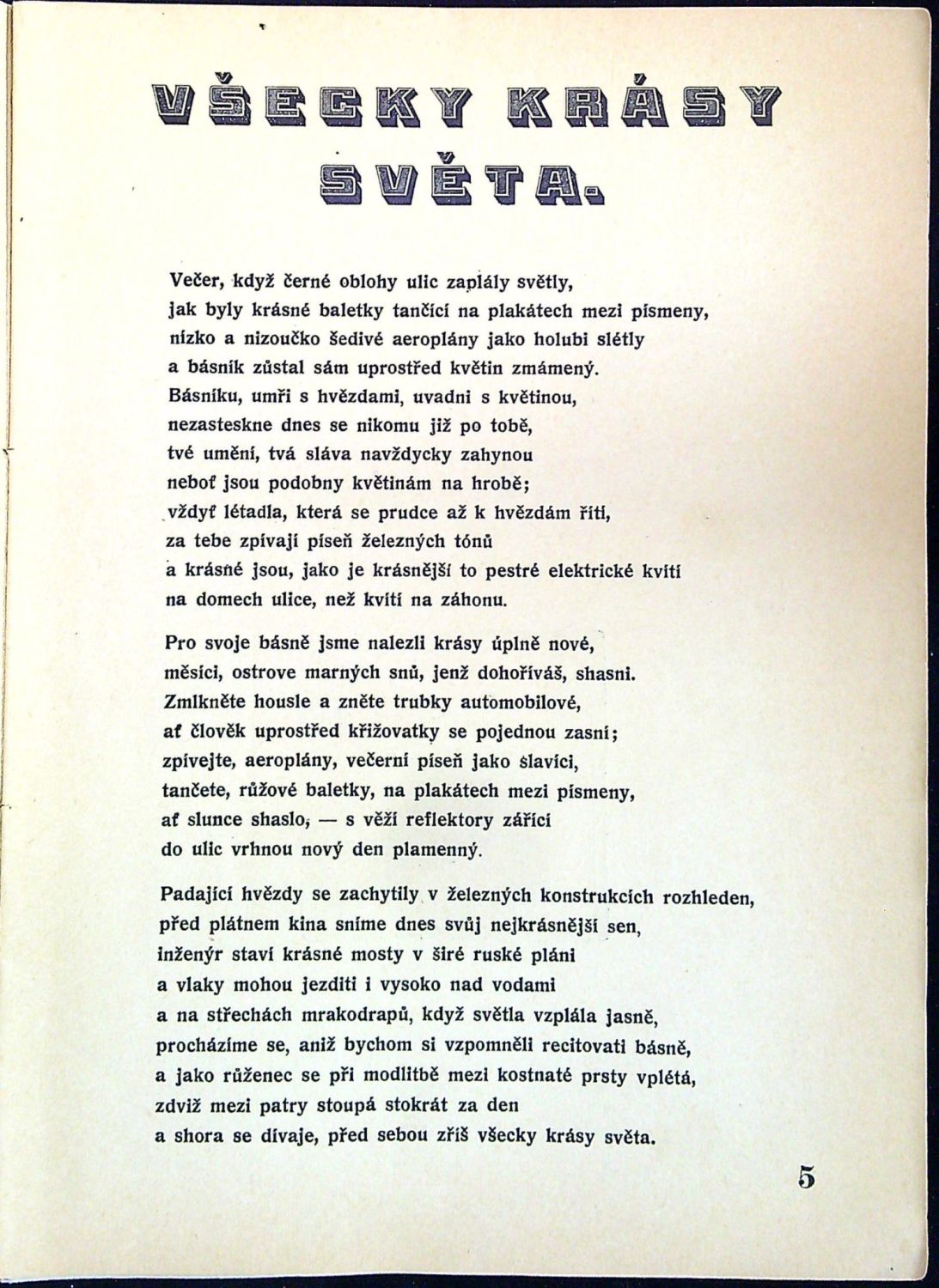 Sborník vyšel v prosinci 1922, typograficky upravil Jaromír Krejcar, vytiskla knihtiskárna "Politika" a clichés V. Neubert na Smíchov. Tištěno na dvojím druhu papíru, světle hnědém a bílém ofsetovém. V textu řada ilustr. a schematických vyobrazení a řada vyobrazení fotografických (Neubertem tištěné technikou cliché nalepené při horním okraji do knižního bloku). Na straně 8-15 francouzský text původního textu Ozenfanta a Jeannereta o purismu psaný pro Život. Na sborníku spolupracovala řada členů Devětsilu (Černík, Honzl, Nezval, Seifert, Teige), Umělecké Besedy (Frinta, Holan, Holý, Kotík,..) a řada dalších nezařazených osobností (Feuerstein, Kotěra, Šíma, Voskovec), ze zahraničních (Archipenko, Behrens, Delluc, Derain, Foujita, Chaplin, Le Corbusier, Lipchitz, Man Ray, Ozenfant, Perret, ....). <br>Zadní strana obálky zašpiněná a místy lehce pomačkaná, přední strana obálky chybí, též papírový pokryv hřbetu. Knižní blok rozvolněný, text samotný bez závad.