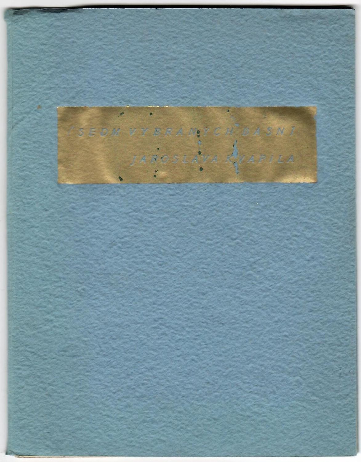 Jeden z 10 nečíslovaných autorských výtisků (krom toho vyšlo 200 číslovaných), které graficky upravil, vysázel a vytiskl F. J. Müller. Básně z let 1895 až 1905 vybral Jaroslav Kvapil. <br>Původní obálka z modře barveného hadrového papíru s chlopněmi, na přední straně původní zlacený papírový štítek s názvem.