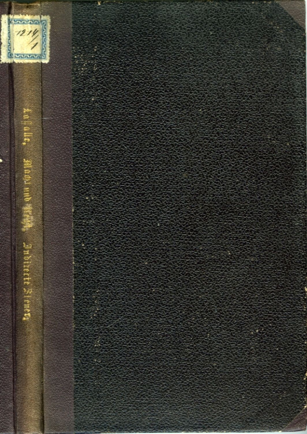 Konvolut dvou prvních knižních vydání Lassallových textů: první vyšel dříve jako leták, druhý, obsahující útok proti nepřímým daním, zatěžujícím pracující třídu, je označována za nejvýznamnější řeč, jakou kdy Lassalle pronesl. - F. Lassalle (1825 Vratislav – 1864 Carouge u Ženevy), právník a politik, zakladatel Všeobecného německého dělnického spolku (1863), první sociálně-demokratické stranické organisace v německojazyčném prostoru, oponent marxistického směru.
