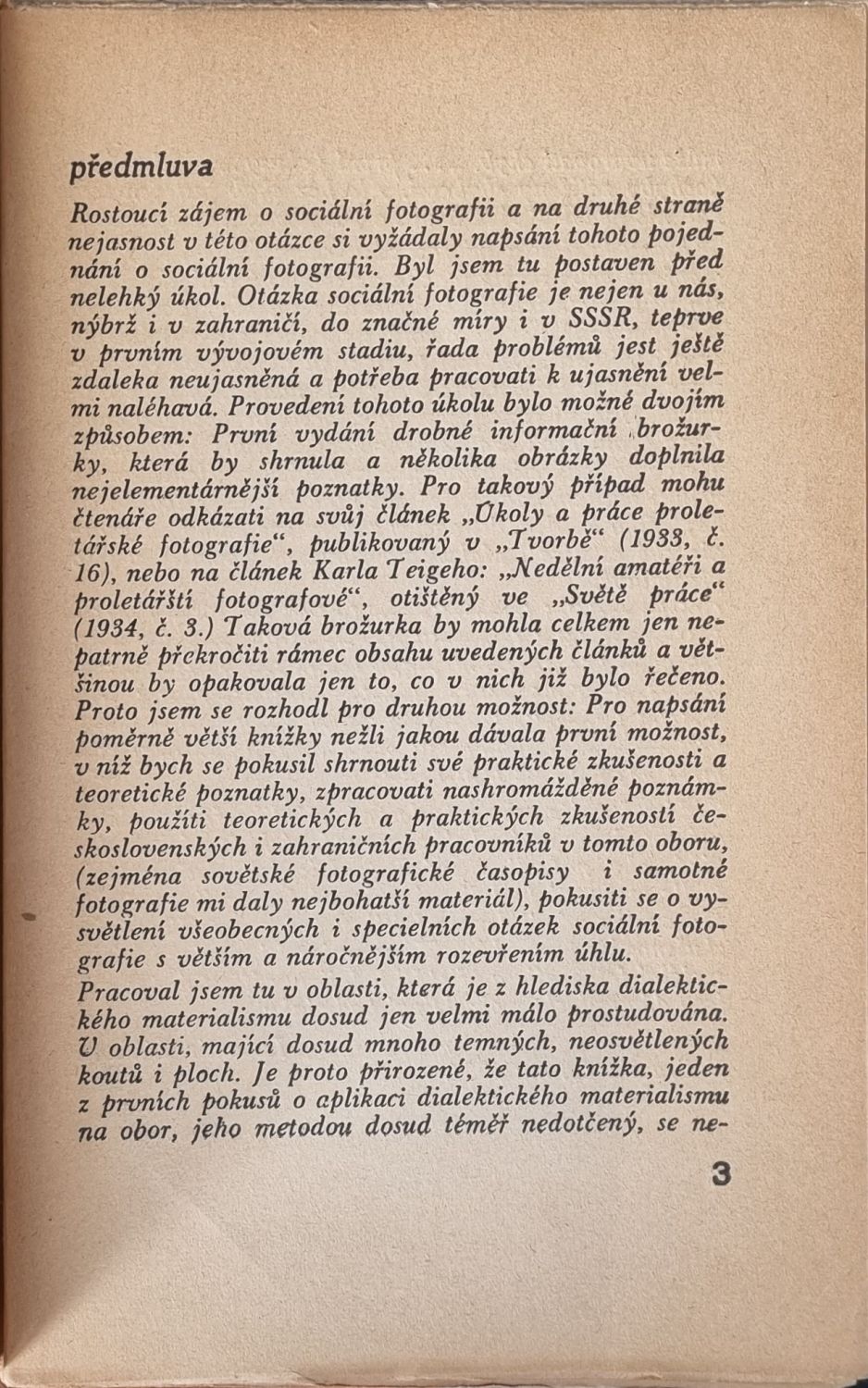 V textu na 12 listech celkem 36 fotografických vyobrazení. Původní pap. obálka. Zadní strana obálky při vnějším okraji místy potrhaná, při horním i spodním okraji hřbetu roztřepená a podélně lehce naprasklá. <br>Velmi vzácně se objevující původní práce významného teoretika fotografie a filmového historika Lubomíra Linharta.