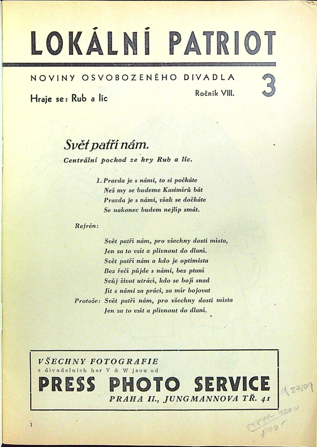 | Nakladatel / tiskar: | nákl. vlastním Osvobozeného divadla, za redakce Staši Jílovské |