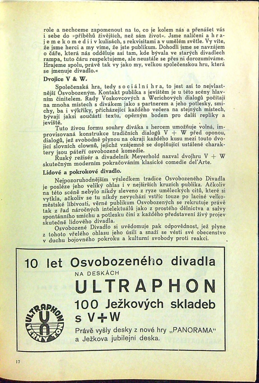 | Nakladatel / tiskar: | nákladem vlastním. Osvobozeného divadla, za redakce Staši Jílovské |