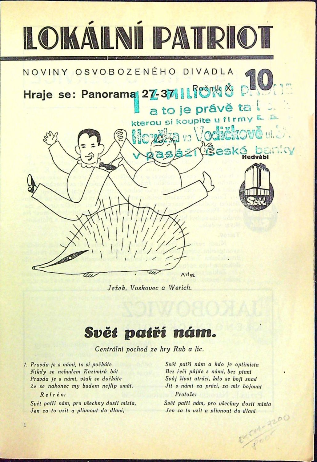 Lokální patriot. Noviny Osvobozeného divadla. Ročník X., číslo 10.