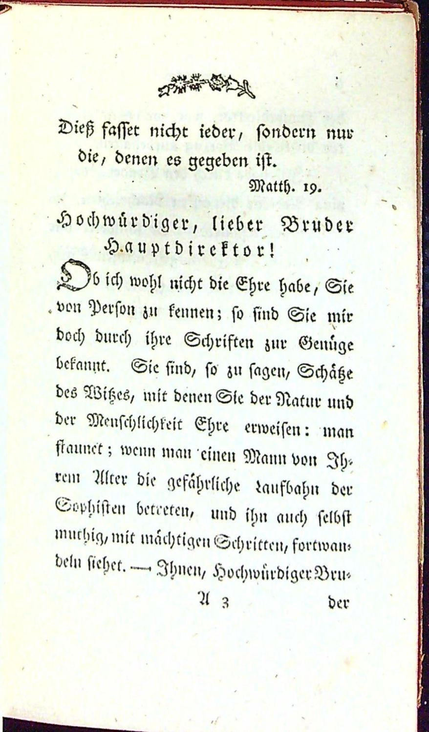 Wolfstieg 42504; Holzmann-Bonatta III,12604.<br>Tištěno švabachem, latinský a anglický text antikvou, uprostřed horního okraji stran dvojitá mizící linka, koncová viněta. <br>Dobová vazba, desky potažené mramorovaným papírem, kožený hřbet a nárožnice, ve hřbetu 5 vazů, ve druhém poli kožený štítek s tlačeným a zlaceným názvem, v ostatních polích tlačený a zlacený rostlinný ornament, červeně barvené ořízky. Vazba ohmataná a místy odřená, naražené rohy. Na předním přídeští nalepeno mědiryt. ex libris z 18. století šlechtického rodu Heinzely jehož někteří člonové se narodili v Košicích. Na tit. listu černým perem vlastnický přípis "Dr. Jene(?)" a číslo knihy. - U některých exemplářů byla mezi str. 84-85 vevázána rozkl. tabule s názvem "Pro Concordia Fratrum Rosae et Aureae Crucis Post Revolutionem Universalem. Anno Domini 1763" (tento ex. tabuliu neobsahuje).<br>Hans Heinrich von Ecker und Eckhoffen (1.8. 1750 Mnichov - 14.8. 1790 Braunschweig) německý šlechtic, svobodný zednář a rosenkrucián. Mistr vídeňské zednářské lóže "Zu den sieben Himmel". Roku 1781 se pokusil založit řád "Rytířů a Bratrů Světla", do kterého začlenil i řadu různých prvků vycházejících z kabaly a do řádu přijímal jako první i židovské členy. Po různých sporech s rosenkruciány opustil roku 1782 Vídeň a pokusil se pokračovat ve svých snahách v Berlíně.