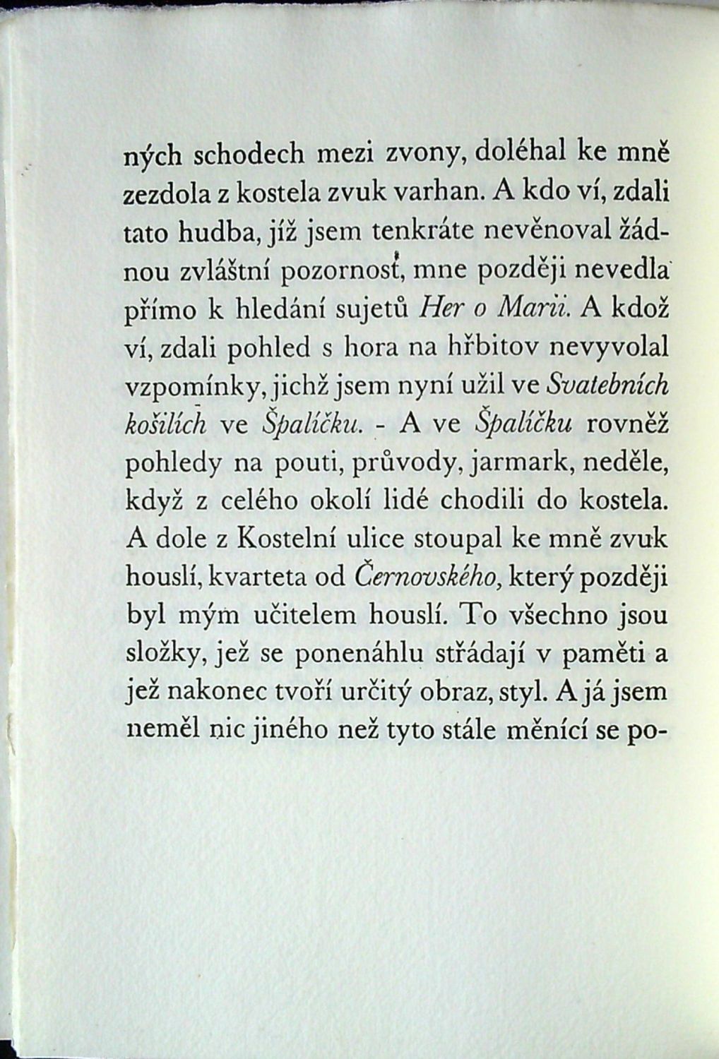 Jeden z 200 vydaných a nečíslovaných výtisků, které k 15. výročí úmrtí Bohuslava Martinů jako svůj soukromý tisk vydal František Popelka v Poličce. Obálku navrhl Jiří Šindler, na ruční papír vytiskly Východočeské tiskárny, n. p. Pardubice, provoz Svitavy. - Původní graficky řešená obálka s chlopní, ve které jsou volně vložené složené tiskové archy.