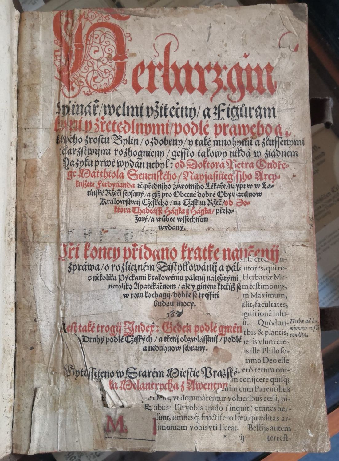 Herbarz: ginak Bylinář/ welmi vžitečný/ a figůrami pieknymi y zřetedlnymi/ podlé praweho a yako ziwého zrostu Bylin ozdobeny/ y také mnohymi a zkussenymi Lékarzswijmi rozhognieny/ gessto takowy nikdá w žiadnem Yazyku prwé wydán nebyl: od Doktora Petra Ondřege Matthiolla Seneského/ Nayjasniegssjho Arcyknižete Ferdynanda ec./ přednjho žiwotnjho Lékaře nayprw w Latinské Ržeči sepsaný/ a giž pro Obecné dobré Obywateluow Králowstwij Cžeského/ na Cžeskau Ržeč/ od Doktoraa Thadeáše Hágka z Hágku/ přeložený/ a wůbec wssechněm wydaný. Při koncy přidano kratke naučenij a zpráwa/ o rozliczném Distyllowánij a pálenij Wod/ s několika Pýckami k takowému pálenij náležitými/ kteréž netoliko Apatékařskuom/ ale y giným kteřijž se w tom kochagij/ dobře se treffiti budau mocy. Gest také trogij Index: Geden podlé gmén Latinskych/ Druhý podlé Cžeskych/ a třetij obzwwlásstnij/ podlé Nemocý a neduhuow sebraný.