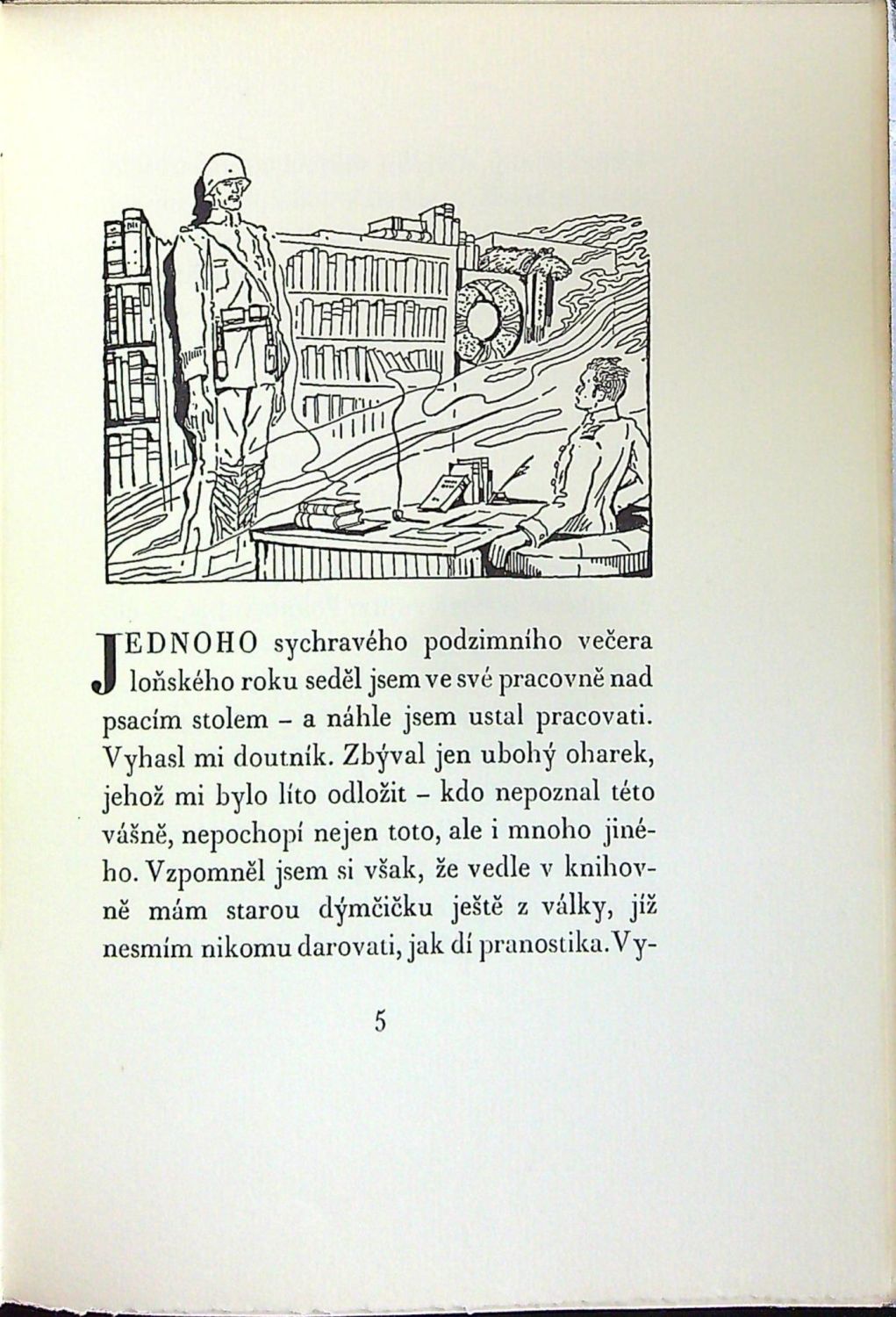 | Ilustrace: | Jan Konůpek - 4 celostr. ilustrace (jedna ve front.), viněta na tit. listu, koncová viněta a ilustrace v záhlaví strany páté. |