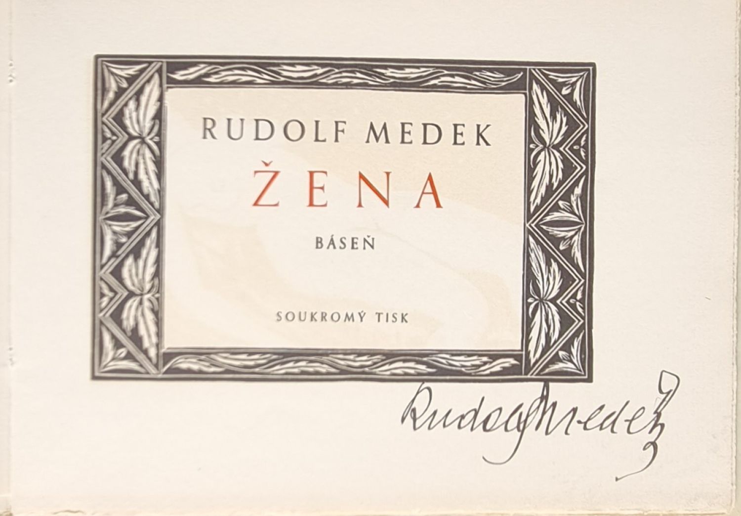 Sáňka neeviduje; Rút "F. Kobliha" neeviduje<br>Jeden z 200 vydaných exemplářů, které k Novému roku 1933 jako soukromý tisk vydal architekt F. Tichý. Písmem Orfeus na ruční papír vytiskla knihtiskárna Novina v Hradci Králové. Dvoubarevně tištěný tit. list zasazený v Koblihově dřevorytovém rámu. Pod rámem podpis Medkův černým perem, na 3 listech tištěná faksimile Medkova rukopisu s červeně tištěnými iniciálami, na posledních dvou listech tištěná poznámka Fr. Tichého. - Pův. pap. obálka (150 x 210 mm) s chlopněmi, šitý knižní blok.
