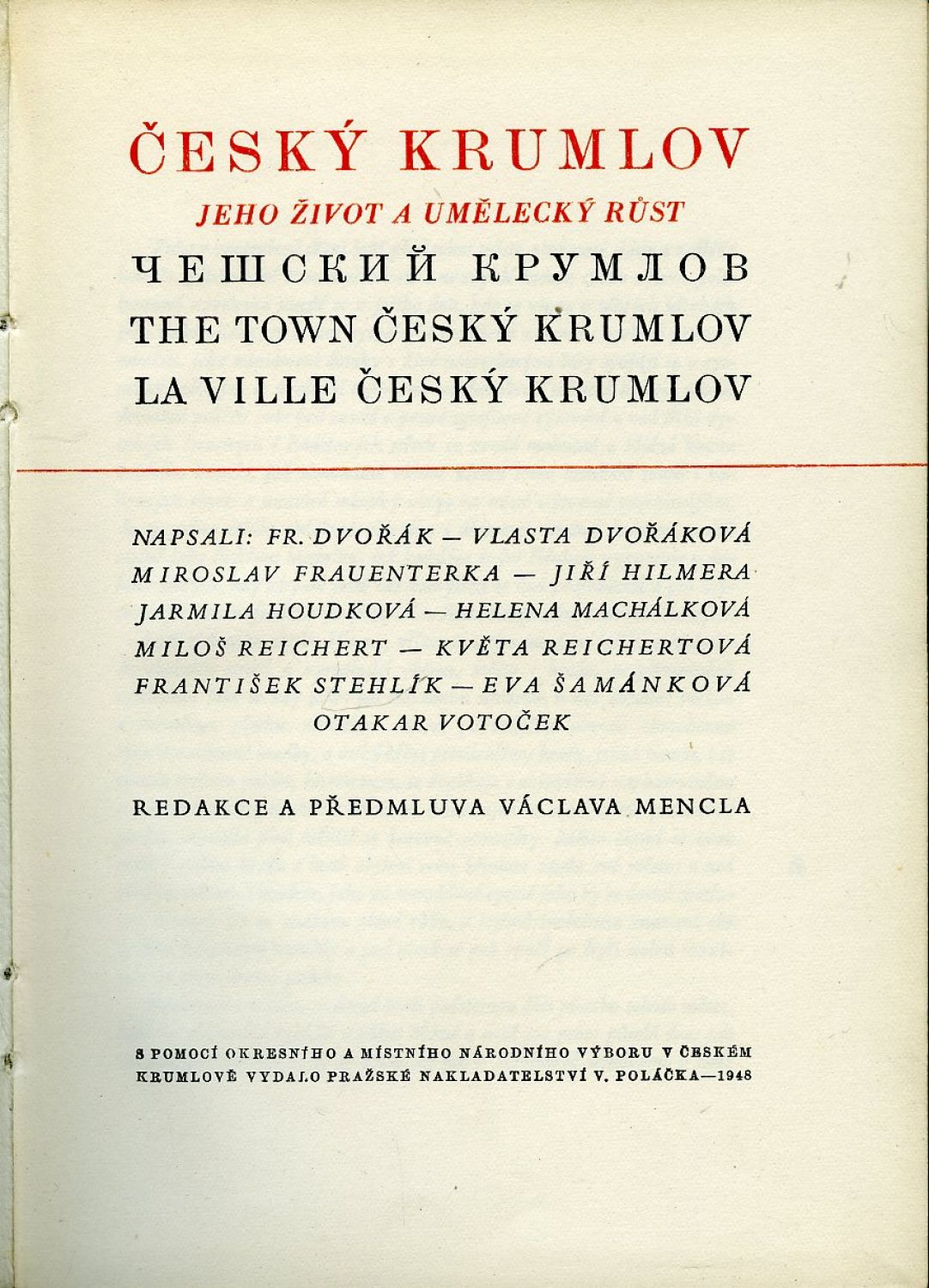 | Nakladatel / tiskar: | V. Poláček s pomocí ONV a MNV v Č. Krumlově |