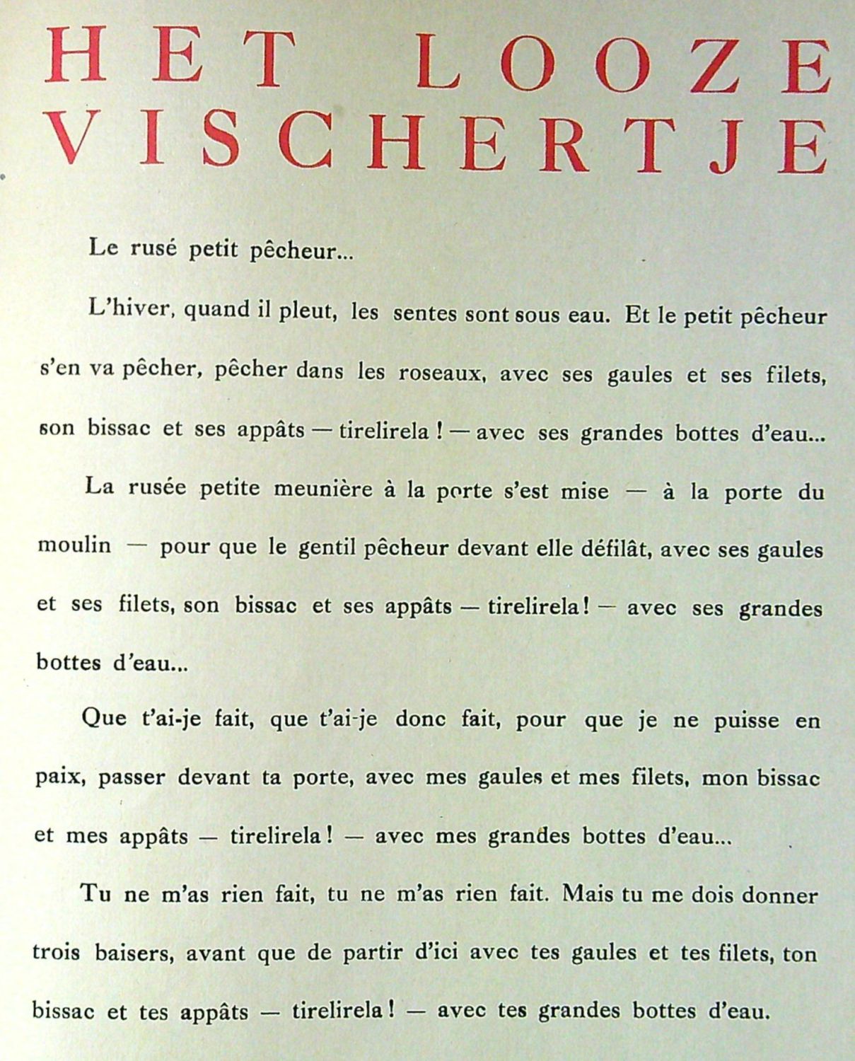 Ex. číslo 32 ze 170 výtisků tištěných na papír Vergé (krom toho bylo 14 výtisků číslovaných A-N tištěných na Hollandu a 30 neprodejných nečíslovaných exemplářů na papíře Vergé). V tiráži perem podpis autorův (iniciály. Dvoubarevný tisk, na titulním listu dvoubarevný dřevořez, mezi textem šest celostránkových Minneho dřevorytů. <br>Původní papírová obálka s dřevořezem na přední straně. Obálka potrhaná, místy chybí černý pap. pokryv, několik listů při vnějším okraji lehce pomačkaných, čtrnáctý list při spodním vnějším okraji lehce natržený.<br>Joris Minne (1897 Ostende - 1988 Antverpy), byl belgický sochař, grafik, malíř a ilustrátor. Během první světové války se seznámil s Rogerem Avermaetem, od roku 1919 začali vydávat v Antverpách časopis "Lumiere", mezi stálé spolupracovníky patřil též Franz Masereel, časopis byl důležitým zdrojem pro obnovení zájmu o dřevoryt a další rytecké techniky v Belgii a stál též u zrodu expresionismu v Belgii.