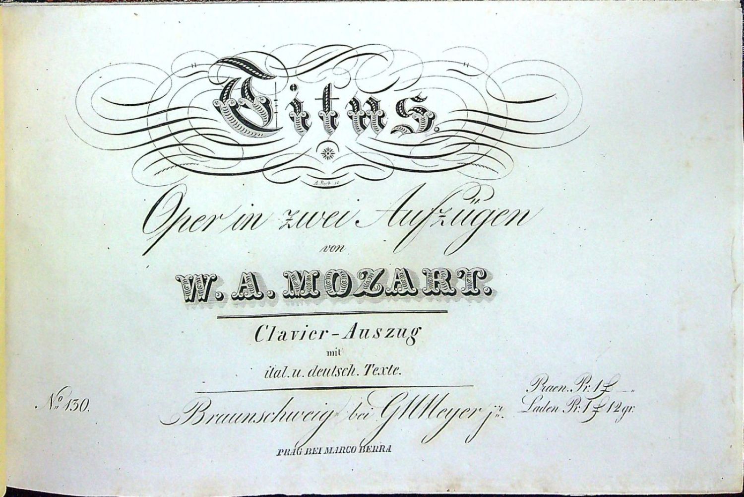 Titus. Oper in zwei Aufzügen. Clavier-Auszug mit ital. u. deutsch. Texte. No. 130.