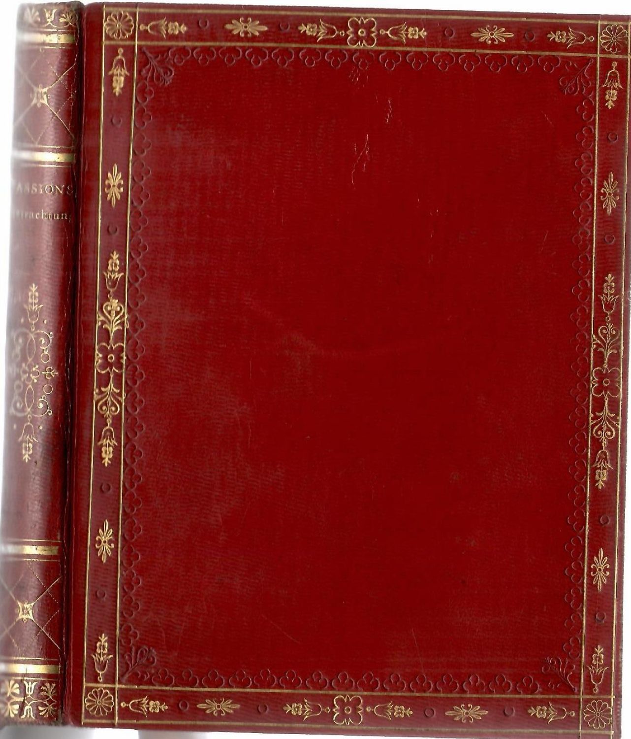 Tištěno švabachem, tučně tištěné versálky a názvy, jednoduché i mizící linky. <br>Krásná dobová empírová individuální vazba z červeného marokénu, na obou deskách tlačený a zlacený rám zdobený květinovými girlandami, na přídeštích a předsádkách moaré, na přídeštích olemované marokénovým pokryvem zdobeným zlaceným ornamentem, původní ochranné kartonové pouzdro potažené červeným marokénem se vzorem "pointillé" olemované tlačeným ornamentem. Pouzdro při horním vnějším okraji natržené a na zadní straně lehce odřené. Zlacené ořízky.<br>Vincenz Raimund Grüner (1771 Praha - 6.8. 1832 Vídeň), rytec a spisovatel působící ve Vídni. Vytvořil řadu ilustrací pro německá vydání různých klasiků (Shakespeare, Goethe, Schiller) a napsal též několik divadelních her, operních libret, románů a básní. Do Vídně se z Prahy přestěhoval v 90. letech, od roku 1796 studoval na vídeňské Akademii výtvarných umění, roku 1822 se neúspěšně ucházel o místo učitele grafiky na Akademii v Praze, roku 1825 se vrátil do Prahy a pracoval jako rytec, na konci 20. let se vrátil zpět do Vídně.