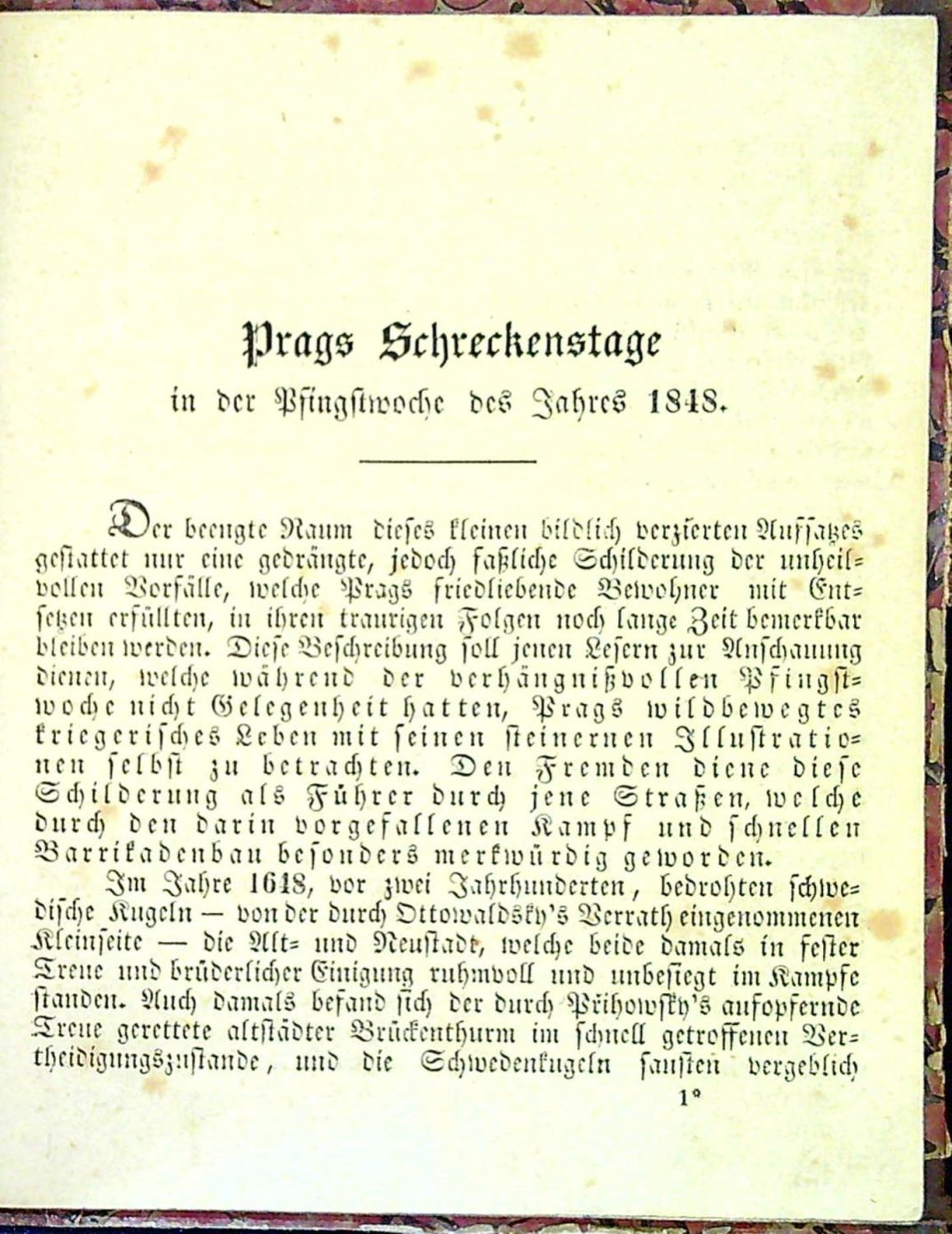 Die merkwürdigsten Tage Prags in der Pfingstwoche des Jahres 1848. Getreue Beschreibung und Schilderung der traurigen Ereignisse und Vorfälle ..