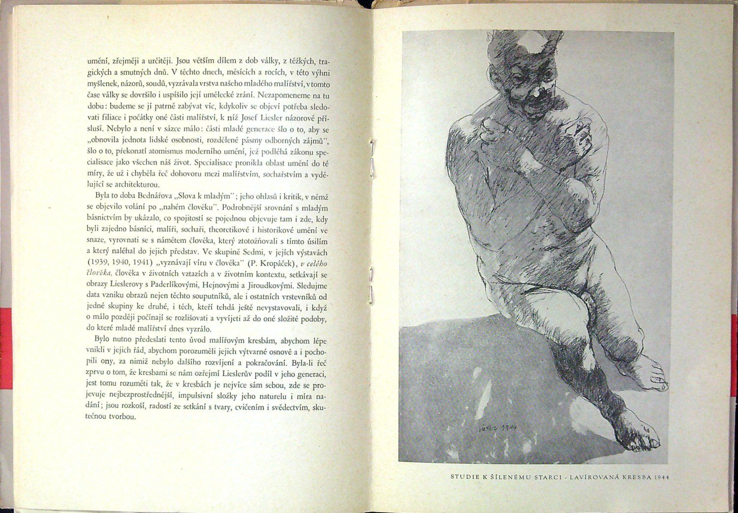 Vydala galerie Jos. R. Vilímek u příležitosti výstavy J. Lieslera. V úvodu báseň Františka Nechvátala, doprovodný text napsal L. Nerad, v textu 6 reprodukcí Lieslerových prací a jeho koncová ilustrace, vzadu seznam 60 vystavených prací. Volně vložen původní Lieslerův lept o rozměru 105 x 75 mm (217 x 146, rozměr celého papíru), autorem uprostřed dole tužkou podepsaný a datovaný 1945.