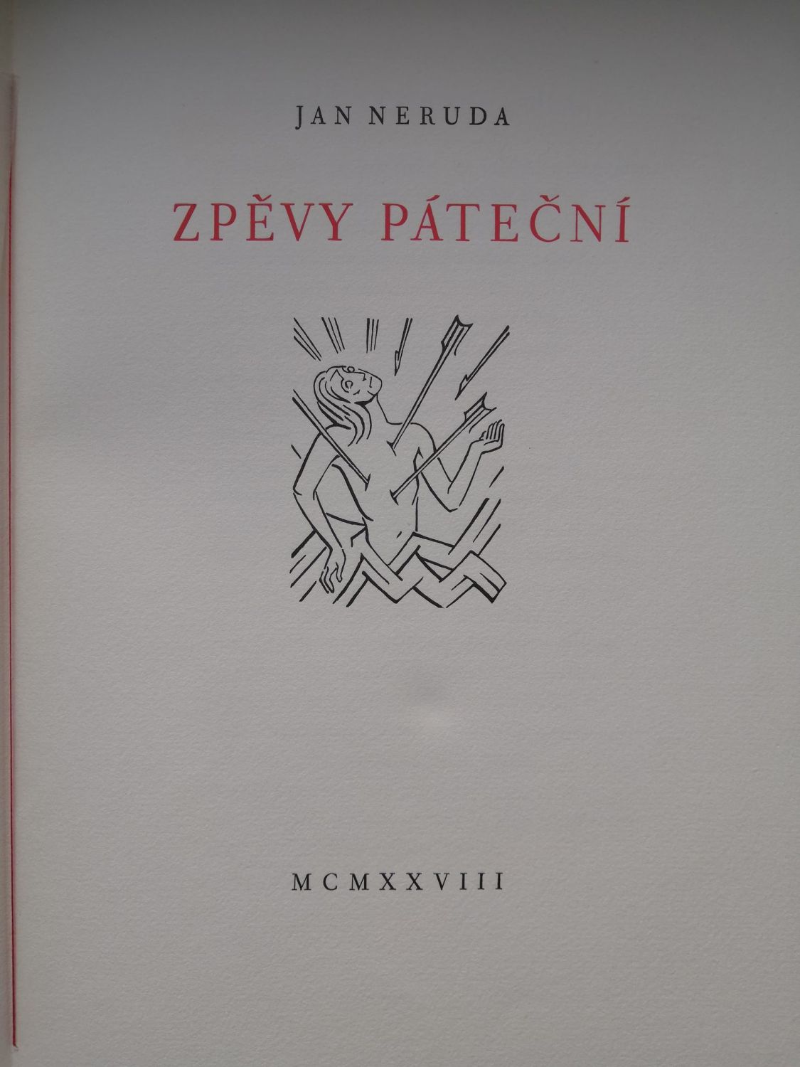 | Ilustrace: | Tři původní celostranné lepty Jana Konůpka, na tit. listu viněta; červeně tištěná paginace stran a plné iniciály zalomené do výše 3-4 řádků. |