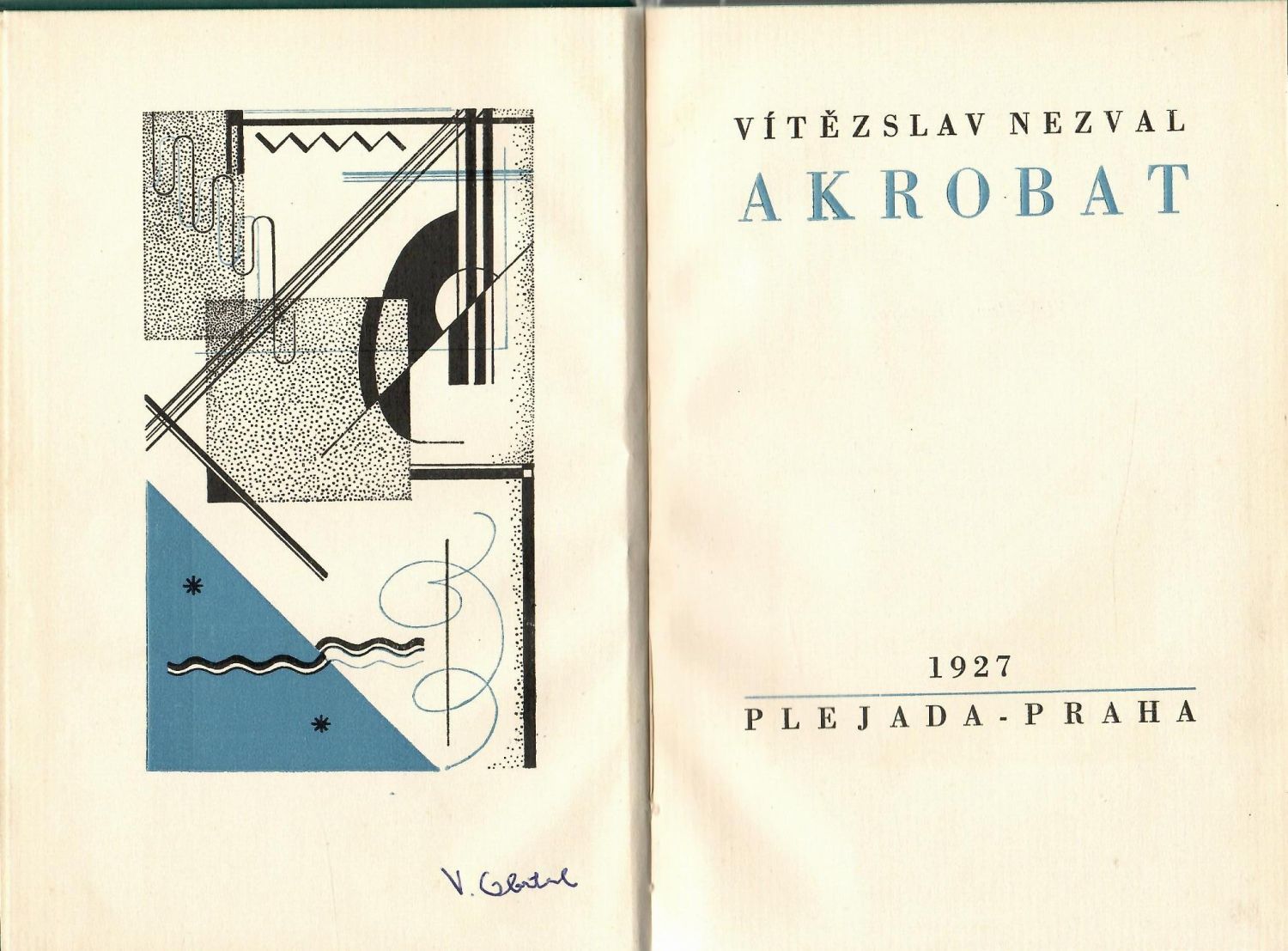 Vytiskla Průmyslová tiskárna. - Jeden z neuvedeného počtu nečísl. exemplářů na papíře Antik. Výborný stav, frontispis podepsán výtvarníkem propisovací tužkou, čili dodatečně. - Vít Obrtel (1901-1988), architekt, teoretik architektury, designér, návrhář nábytku, scénograf, typograf, knižní grafik, básník a redaktor.