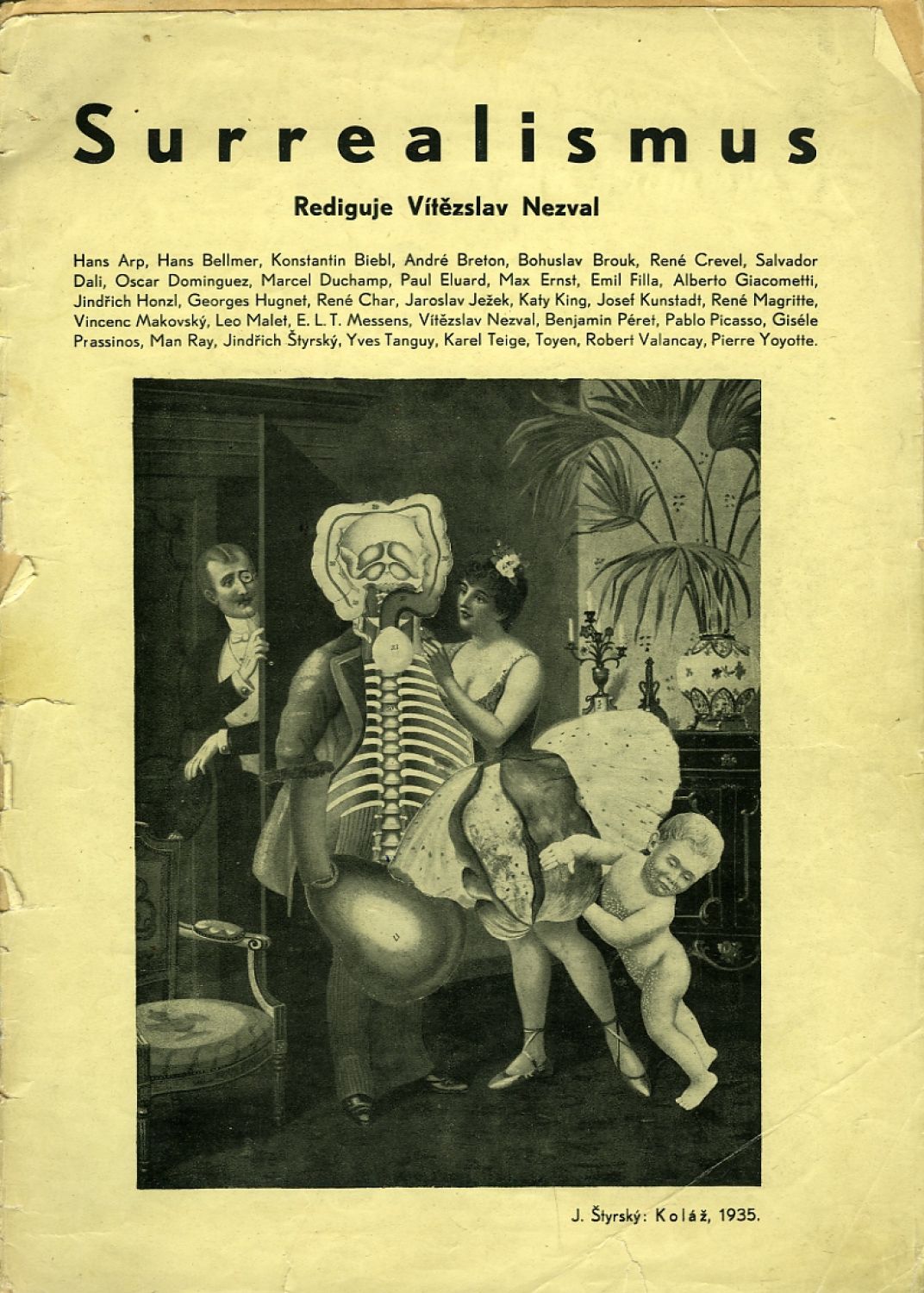 | Ilustrace: | Na obálce reprodukce fotografické koláže Jindřicha Štyrského, mezi str. 24-25 čtyři nepaginované listy s 35 vyobrazeními prací různých autorů. |