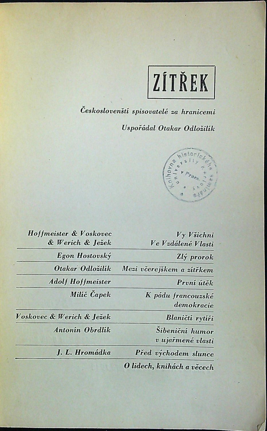 Zítřek. Českoslovenští spisovatelé za hranicemi.