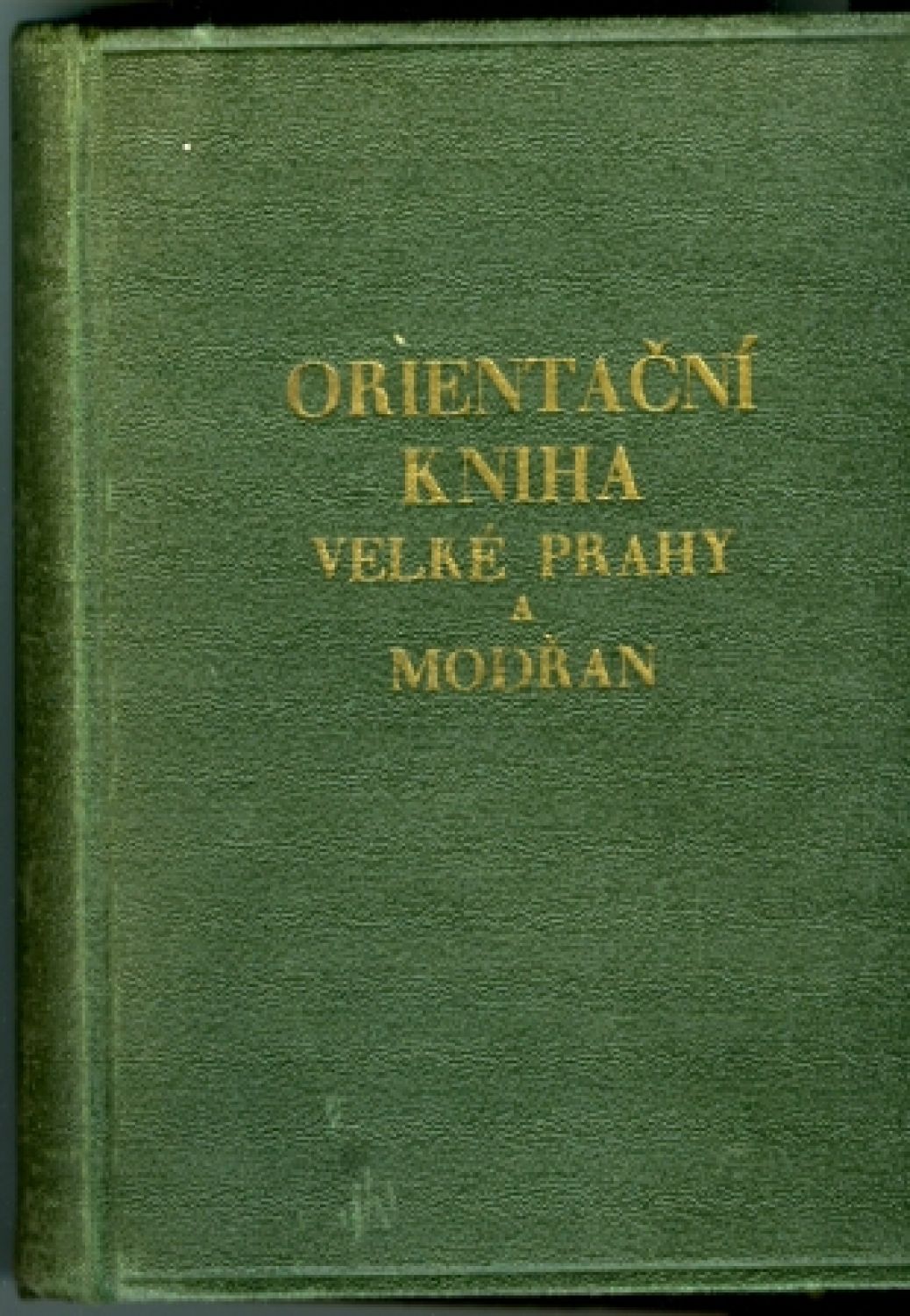 Orientační kniha Velké Prahy a Modřan. Vydává Masarykův četnický vzdělávací a podpůrný fond (nyní SNB) za technické spolupráce místního velitelství SNB v Praze.