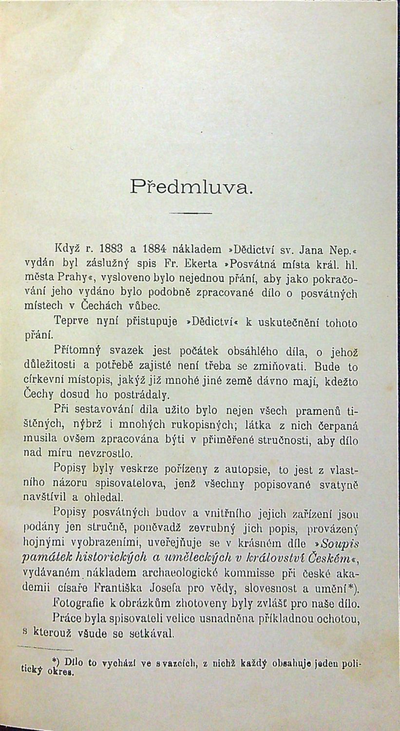 Posvátná místa království Českého. Dějiny a popsání chrámů, kaplí, posvátných soch, klášterů i jiných pomníků katolické víry a nábožnosti v království Českém. Řada první: Arcidiecese pražská.