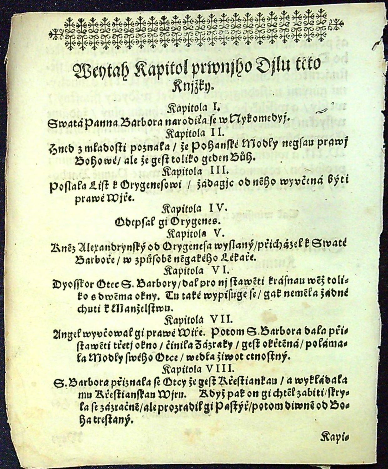 Předrahý Poklad/ Pokladnice Cžeského Králowstwj/ To gest: Přemilá Pánu Bohu Panna a Mučedlnice S. BARBORA/ Hor Kutten Střjbrných/ npo Bohu a Matce Božj neylepssý Autočisstě/ neymilegssy Patronka a Orodownice. Gegjžto Žiwot asy před dwauma sty let Od gakéhos Doktora S. Pjsma w Latinské Ržeči sepsaný/ a w Bibliothece Kollege Towarystwa Gežjssowa w Starém Městě Pražském/ mezy starými rukau na Pargaméně psanými Knihami nalezený: Nynj pak w nowě na česko přeložený/ Vrozeným/ Slowutné a Mnoho=wzáctné Poctiwosti Panům G. M. Cýsařské Panu Rychtáři/ Panům Ssephmistrům/ a Panům Spolu=Raddnjm/ gako y celé Obcy Swobodného Hornjho Města na Horách Kuttnách/ Za Dar Nowého sstastně nastáwagicýho M.DC.LXX. Léta/ s winssowánjm od Pána Boha wsseho dobrého/ připsaný a obětowaný/ Wssem S. Panny BARBORY Milownjkům a Milownjcem/ k duchwnjmu vžitku a Pottěssenj na swětlo se wydáwá S Powolenjm Geho Wys: Oswjc: Knjž: Mil: P. P. MATHAEI FERDINANDI Arcy=Biskupa Prazského/ etc etc.