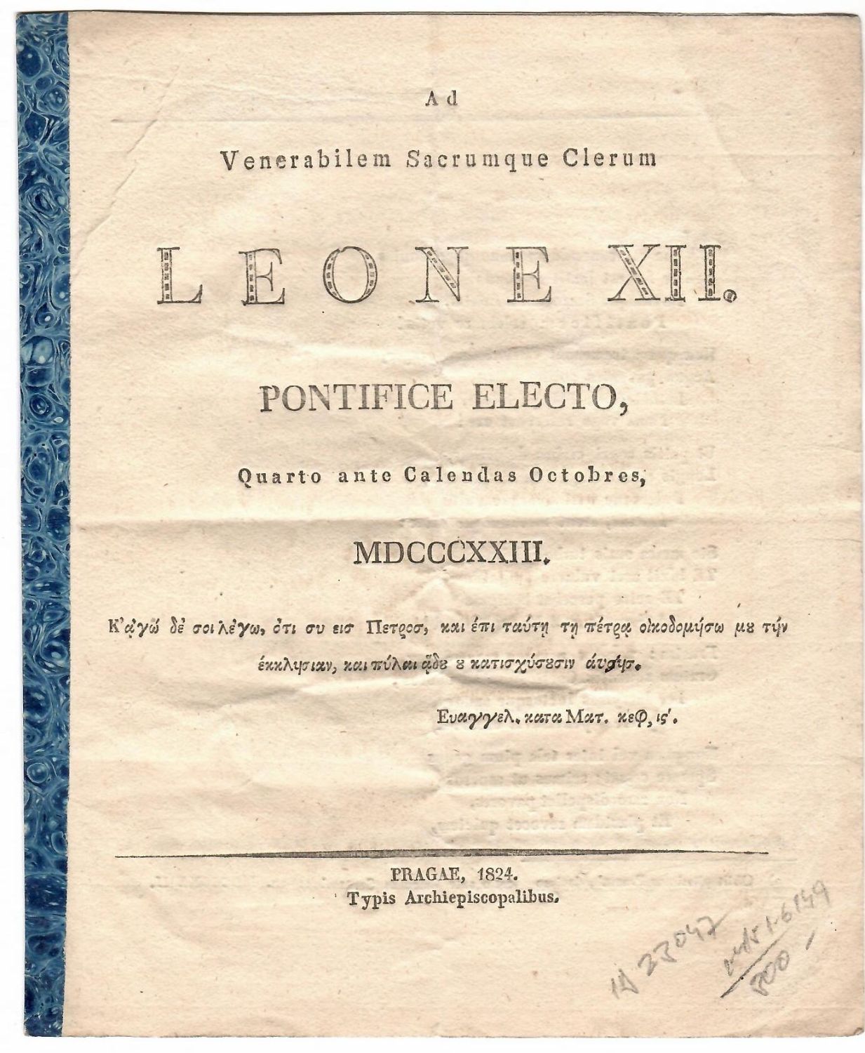 Ad Venerabilem Sacramque Clerum LEONE XII. PONTIFICE ELECTO, Quarto ante Calendas Octobres, MDCCCXXIII.