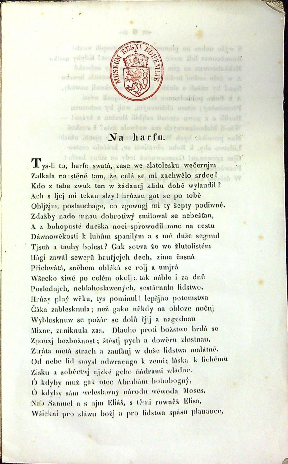Tištěno antikvou, přeložil Karel Vinařický. - Pův. pap. obálka, ve hřbetu místy potrhaný papír, oslí uši. Na přední straně obálky, na tit. listu a na konci stará razítka z konce 19. století "Museum Regni Bohemiae".