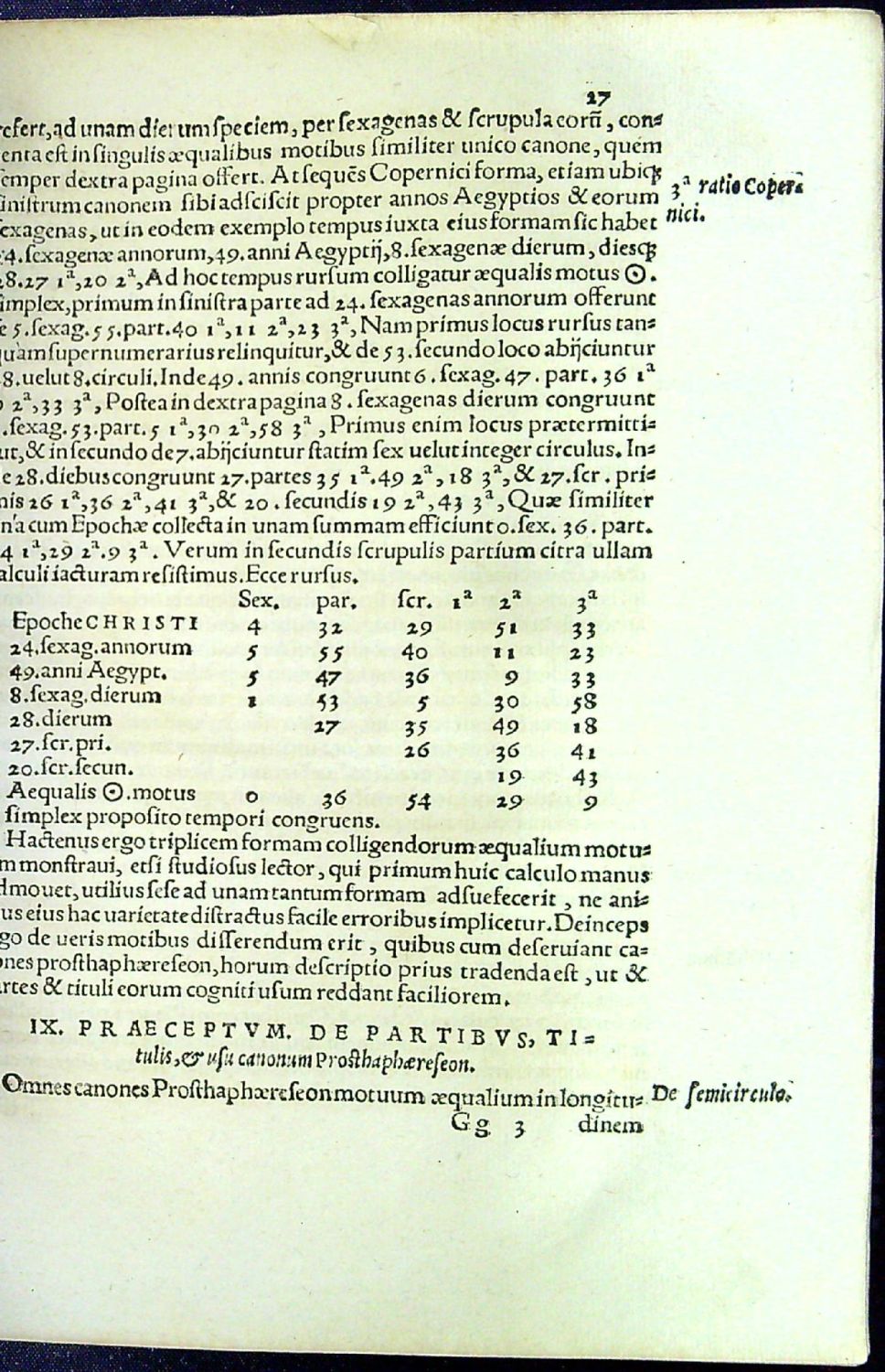 Červeno-černě tištěný hlavní titulní list, tištěno antikvou, řecký text alfabetou, tištěné poznámky po stranách. Kniha se skládá ze tří částí, každá se samostatným tit. listem a vlastní paginací listů, ve třetí části 10 podtitulních listů. V první části konturové iniciály v jednoduchém rámečku na ilustr. pozadí zalomené do výše 5-7 řádků, viněta na tit. list první části, dvě rozkládací tabule. Chyby v paginaci. <br>Pergamenová vazba z atelieru Krupka, ochranné dvoudílné kartonové pouzdro potažené mramorovaným papírem a pouzdro z kartonu. Řada rukopisných marginálií černým perem latinským a místy řeckým jazykem z konce 17. a počátku 18. století se vztahem k textu. Folia 77-80 ve třetí části jsou vevázána mezi folia 84-85. Velmi vzácné první vydání. Ve stavu velmi dobrém.<br>Erasmus Reinhold (22.10. 1511 Saalfeld - 19.2. 1553 Saalfeld), byl německý astronom a matematik považovaný za nejvlivnějšího astronomického pedagoga své generace. Roku 1536 byl jmenován profesorem vyšší matematiky na universitě ve Wittenbergu, kde později také působil ve funkci rektora. - Nabízená kniha je v Čechách a na Moravě pouze v jediném exempláři v NK ČR v Praze. který pochází z osobní knihovny Tychona de Brahe.