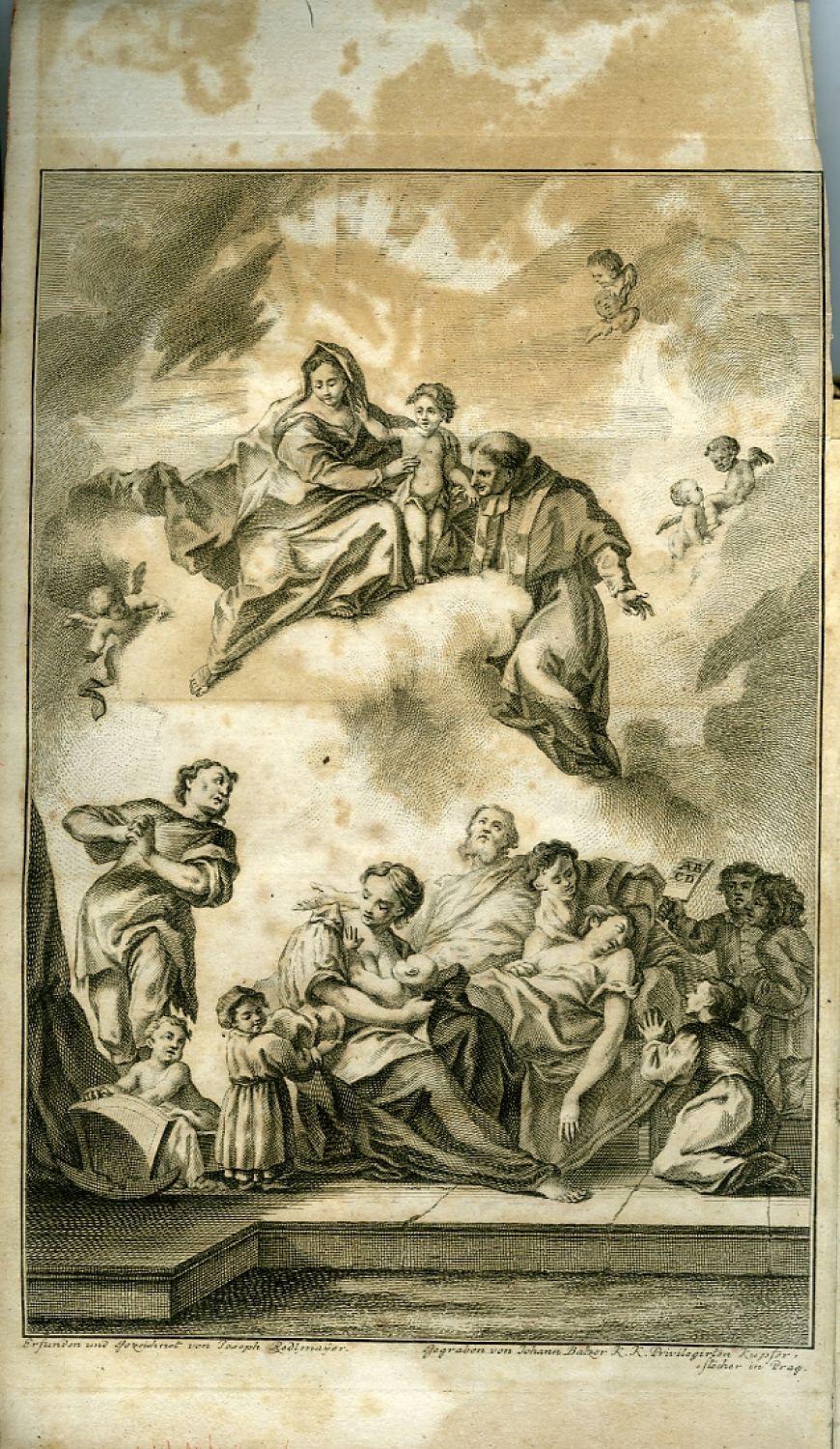 | Ilustrace: | Ve frontispisu mědirytina Johanna Balzera podle kresby Josefa Redlmayera, s vyobr. Panny Marie s Ježíškem a Karlem Boromejským; rozměr desky 250 x 160 mm (celý papír 293 x 170 mm). |