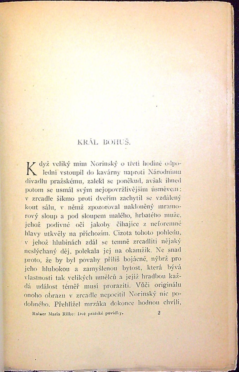 Do českého jazyka přeložil Jan Löwenbach. - Původní pap. obálka, přední strana dvoubarevně tištěná s ilustrací neurčeného autora, na přední straně obálky razítko "Premie Zlaté Prahy a Světozoru". Knižní blok neoříznutý a nerozřezaný.