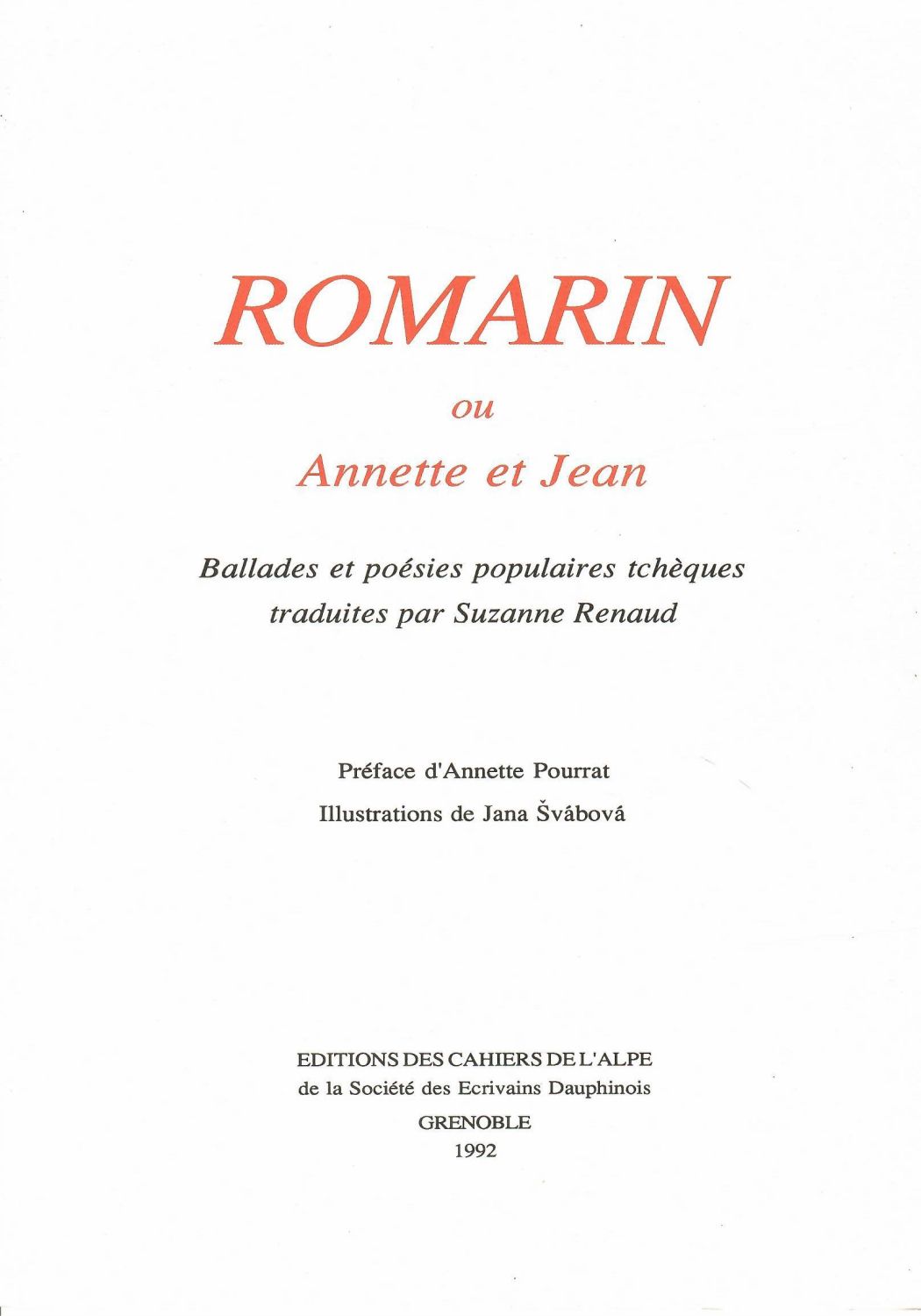 ROMARIN ou Anette et Jean. Ballades et poésies populaires tchéques traduites par Suzanne Renaud.