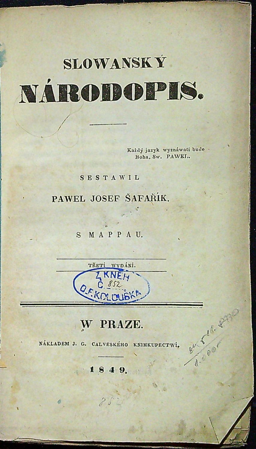 Tištěno antikvou, živá záhlaví. - Původní pap. obálka, ve hřbetu chybí pap. pokryv, přední strana obálky při vnitřním okraji natržená. Na tit. listu staré vlastnické razítko "Z kněh O. K. Kolouška", při spodním okraji tit. listu oslí uši, knižní blok neoříznutý. Mapa avizovaná na titulním listu chybí (chybí ve všech evidovaných exemplářích).