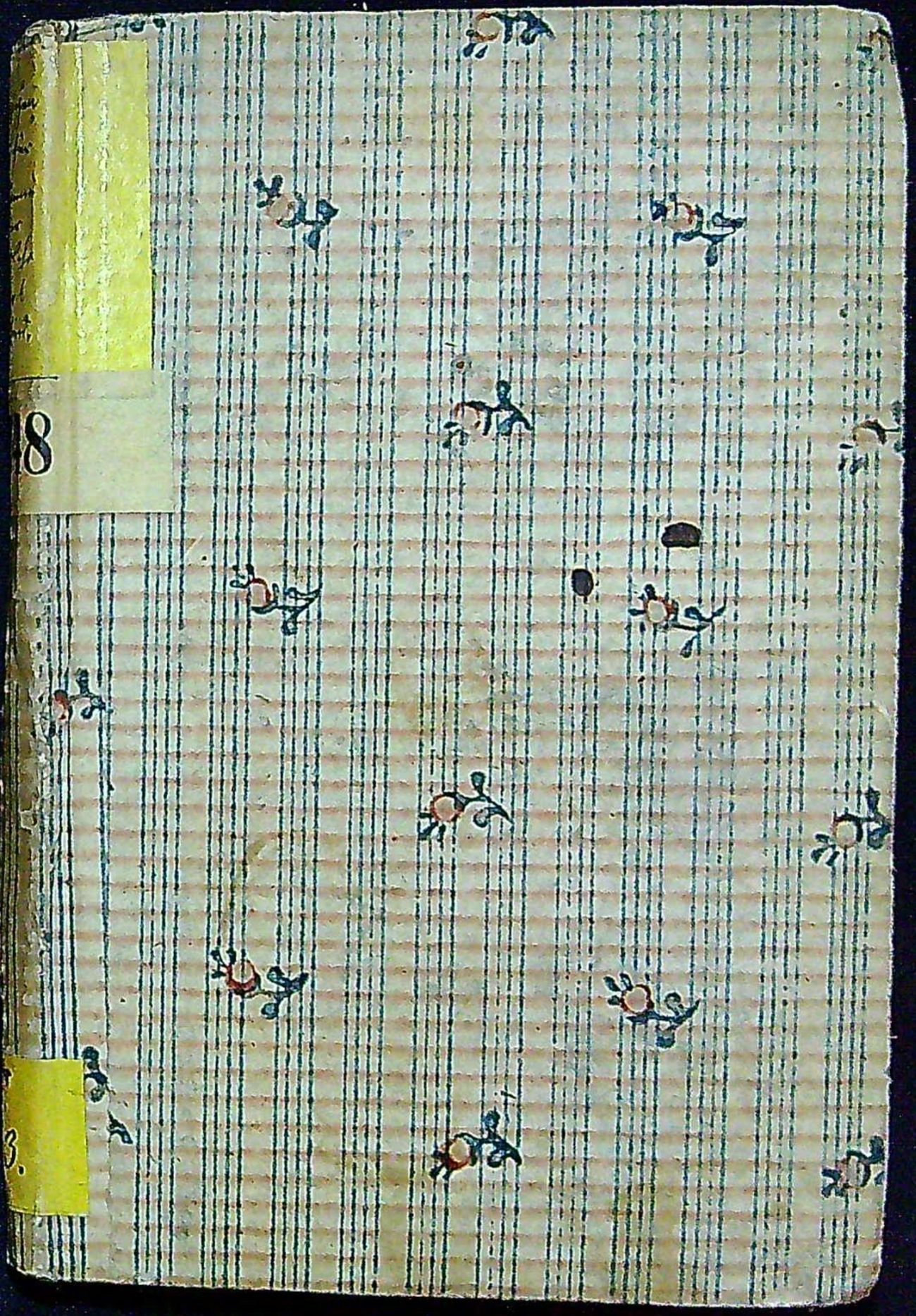 Dobová kartonová vazba potažená papírem s vertikálami a místy zdobeným kvítkem s lístky. Přes horní okraj hřbetu přelepen žlutý kožený štítek s rkp. napsaným názvem, pod ním papírový s číslem a při spodním okraji žlutý s evidenčními údaji. Na tit. listu drobné razítko lóže "zu den 3 Felsen".