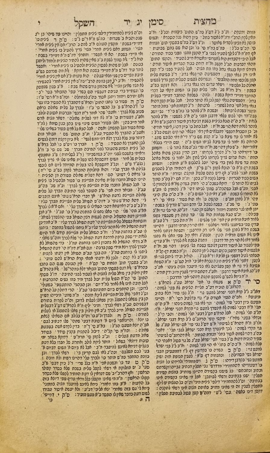 Dvoubarevně tištěný titulní list, tištěno hebrejsky, živá záhlaví, na tit. listu dřevorytová viněta.<br>Dobová kožená vazba, ohmataná a místy odřená. Titulní list lehce zašpiněný, na posledním listu světle hnědá skvrna.<br>Samuel ha-levi Kollin, celým jménem Samuel ben Nathan Kell ha-levi (1720 či 1724 nebo 1725 Kolín - 1806 Boskovice), učenec, autor několika náboženských spisů a jeden z nejvýznamnějších učitelů boskovické ješivy. Je pochován na čestném místě takzvaného rabínského okrsku na boskovickém židovském hřbitově a jeho hrob se stal poutním místem ortodoxní komunity z New Yorku. Nabízená práce, která tiskem vyšla po jeho smrti "Machcít ha-šekel" (Polovina šekelu) je jeho stěžejní prací. Jedná se o jeho komentář k první části halachického kodexu náboženského práva "Šulchan aruch" (Prostřený stůl). Samuel je známý a uctívaný dodnes v ortodoxních kruzích pod jménem své nejvýznamnější práce Machcít ha-šekel.