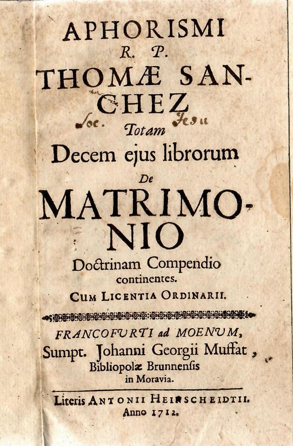 APHORISMI R. P. THOMAE SANCHEZ Totam Decem ejus librorum De MATRIMONIO Doctrinam Compendio continentes.