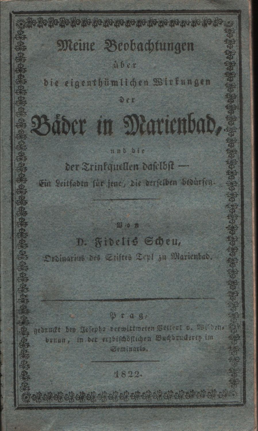 Hirsch V. 220. - Frontispis a tit. l. nepatrně zahnědlý, jinak velmi dobrý stav. / Front. u. Titel minimal gebräunt, sonst sehr gut erhalten. - F. Scheu (1780 - 1830), seit 1813 Stadtphysikus zu Rumburg u. Arzt dieser fürstl. Liechtenstein´schen Herrschaft, 1820 Ordinarius d. Prämonstratenser-Stiftes Tepl und Badearzt des dem Stifte gehörenden Kurortes Marienbad.